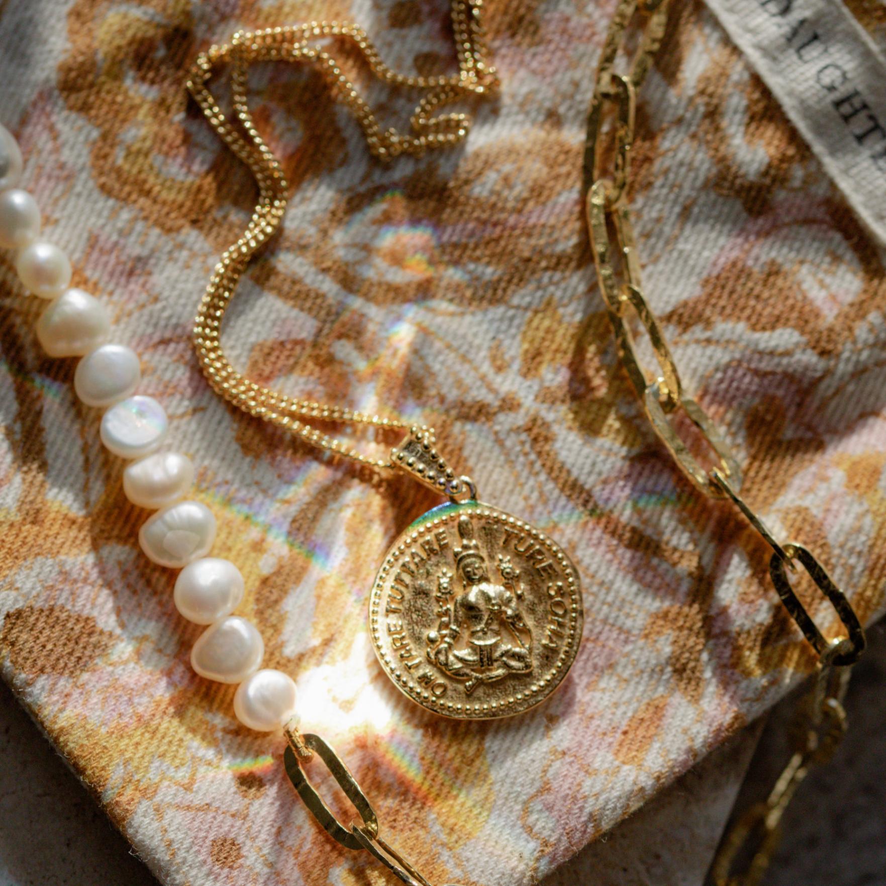 I'm so in love with this stunning, unique necklace. It's so beautiful and it looks amazing. I love that I can adjust the length depending on what I'm wearing or the look I'm going for. The chain is the perfect size and the pendant is very detailed. It's my all time favorite necklace. I wear it all the time. It's become my signature piece. I've had this for a few years and it still looks brand new. It's extremely high quality and well made. Something that I know will last my lifetime. It was definitely a splurge for me, but so worth it. The packaging was gorgeous and eco friendly, as always. I love the meaning behind the Kali necklace and I feel good spending money here because of the shops practices. I've gotten a several pieces of jewellery from here since I discovered Loft and Daughter and I'm always impressed.