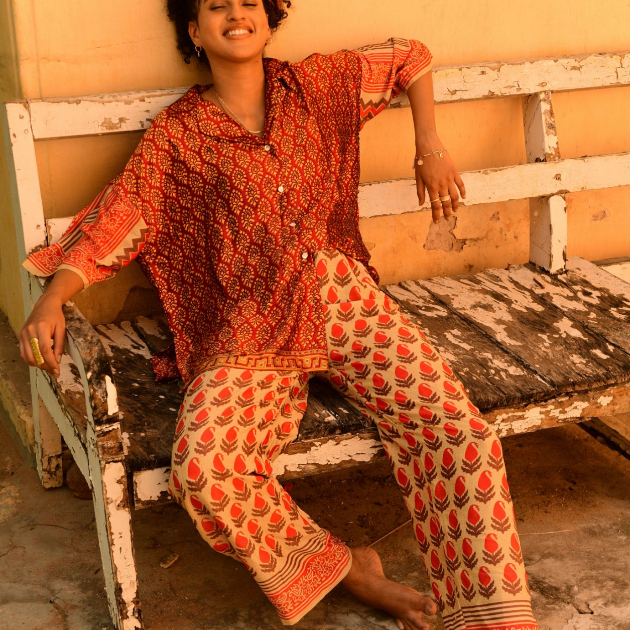 Whether it’s a luxurious co-ord for your summer adventures, fancy pyjamas or beautiful separates to elevate your outfit, our Once Upon A Sari Co-ords will have you feeling like a floaty goddess whatever the occasion.