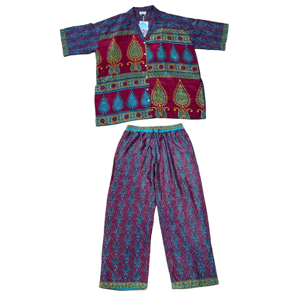 Now reimagined and co-created by empowered female artisans in rural India, our Once Upon A Sari co-ords/ pyjamas, are lovingly created from pre-loved saris sourced from all corners of India, and hand-selected for their beautiful prints. Each set is one of a kind, no two are the same.