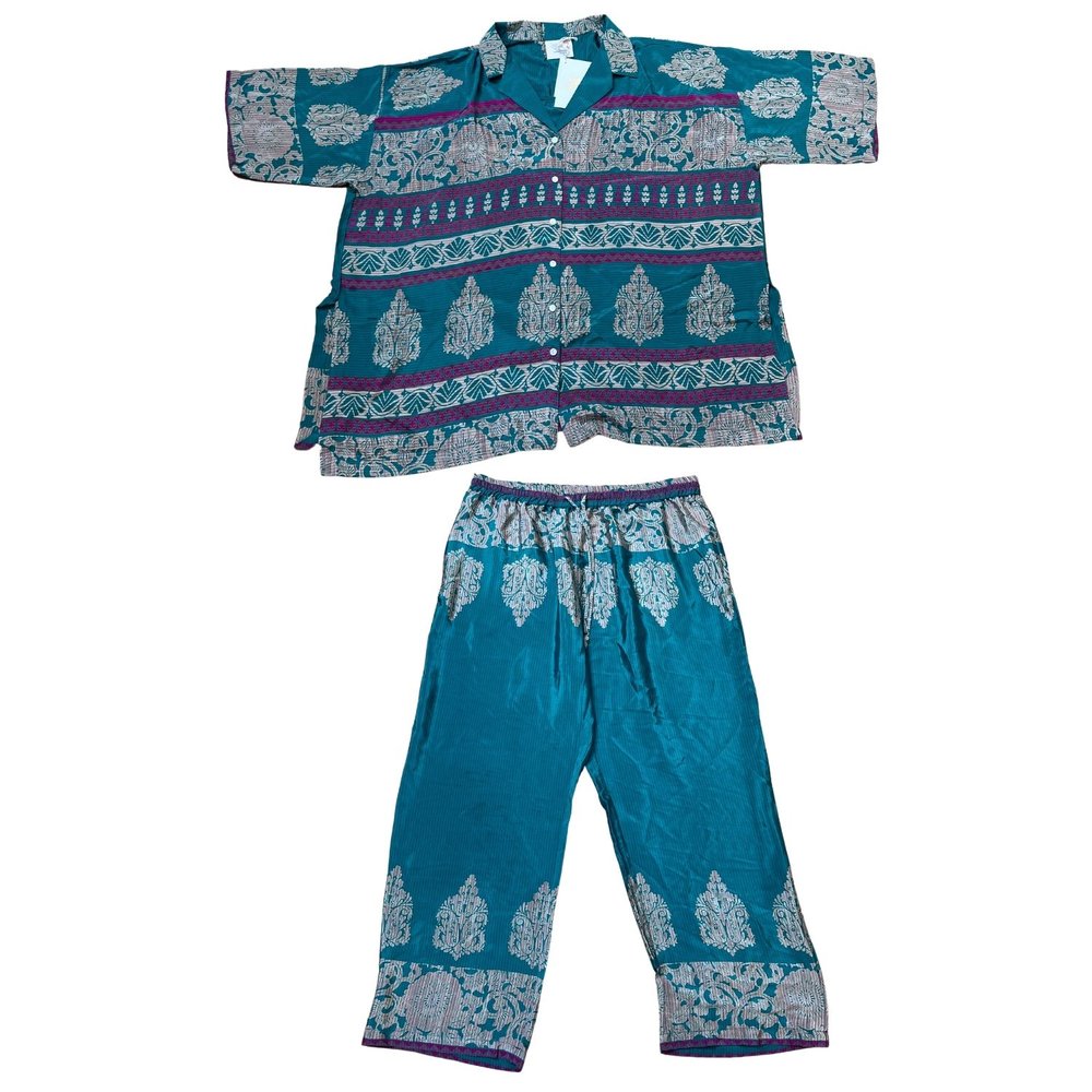 Now reimagined and co-created by empowered female artisans in rural India, our Once Upon A Sari co-ords/ pyjamas, are lovingly created from pre-loved saris sourced from all corners of India, and hand-selected for their beautiful prints. Each set is one of a kind, no two are the same.