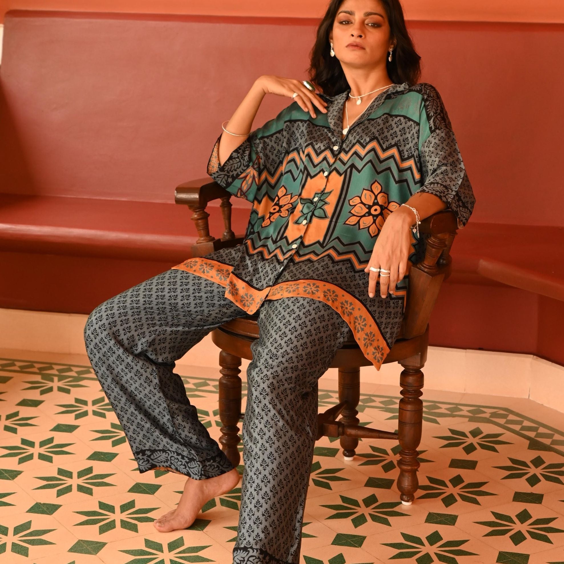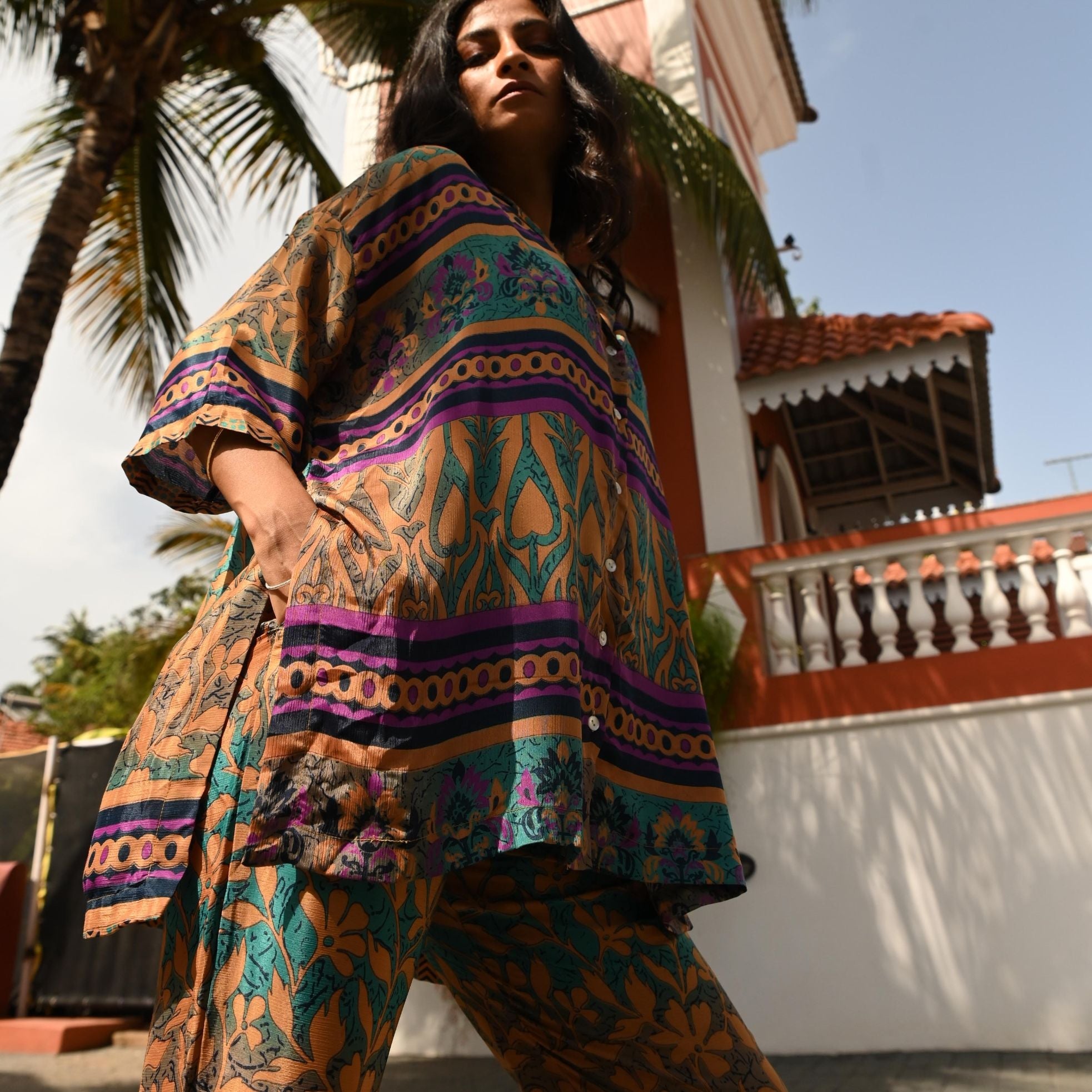 Now reimagined and co-created by empowered female artisans in rural India, our Once Upon A Sari co-ords/ pyjamas, are lovingly created from pre-loved saris sourced from all corners of India, and hand-selected for their beautiful prints. Each set is one of a kind, no two are the same.