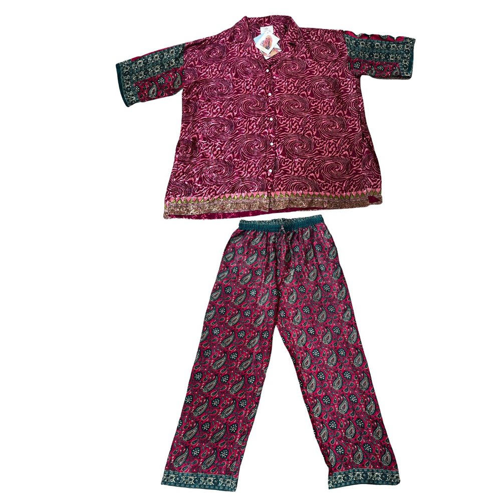 Now reimagined and co-created by empowered female artisans in rural India, our Once Upon A Sari co-ords/ pyjamas, are lovingly created from pre-loved saris sourced from all corners of India, and hand-selected for their beautiful prints. Each set is one of a kind, no two are the same.