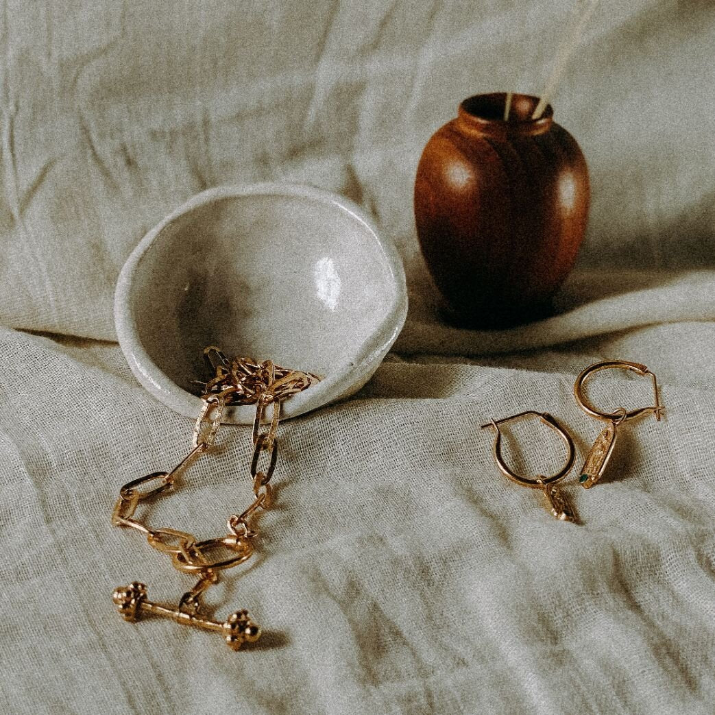 One pouch per order (unless ordering items at risk of tangling such as pendants, which will have their own pouch). If you would like more than one pouch (for gifting purposes) please include in the note at checkout or email hello@loftanddaughter.com