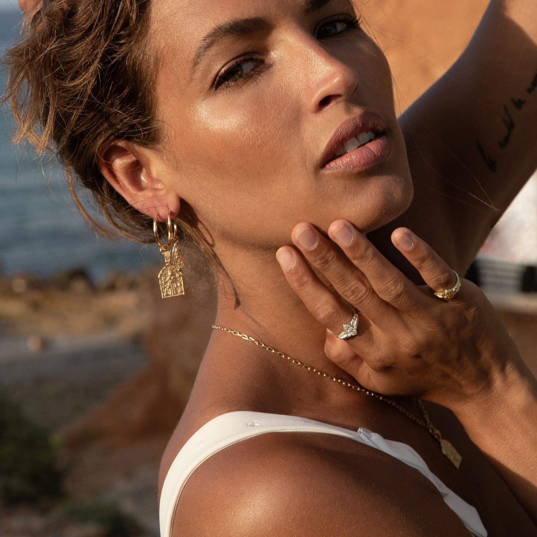 The versatile drop hoops can be worn with the charm, or without, giving two completely different looks, making for a perfect gift.