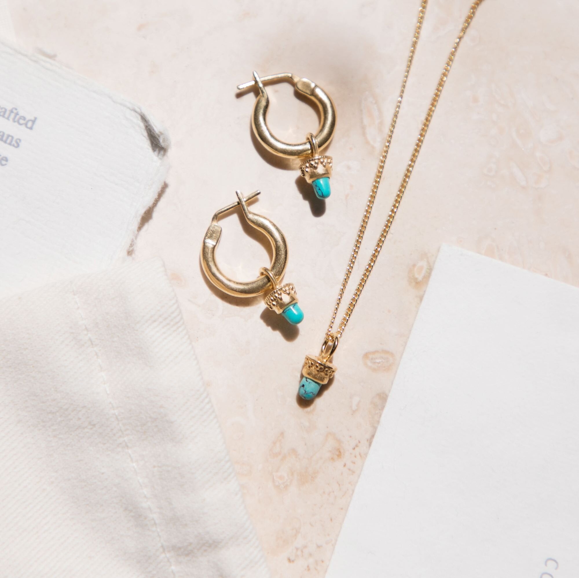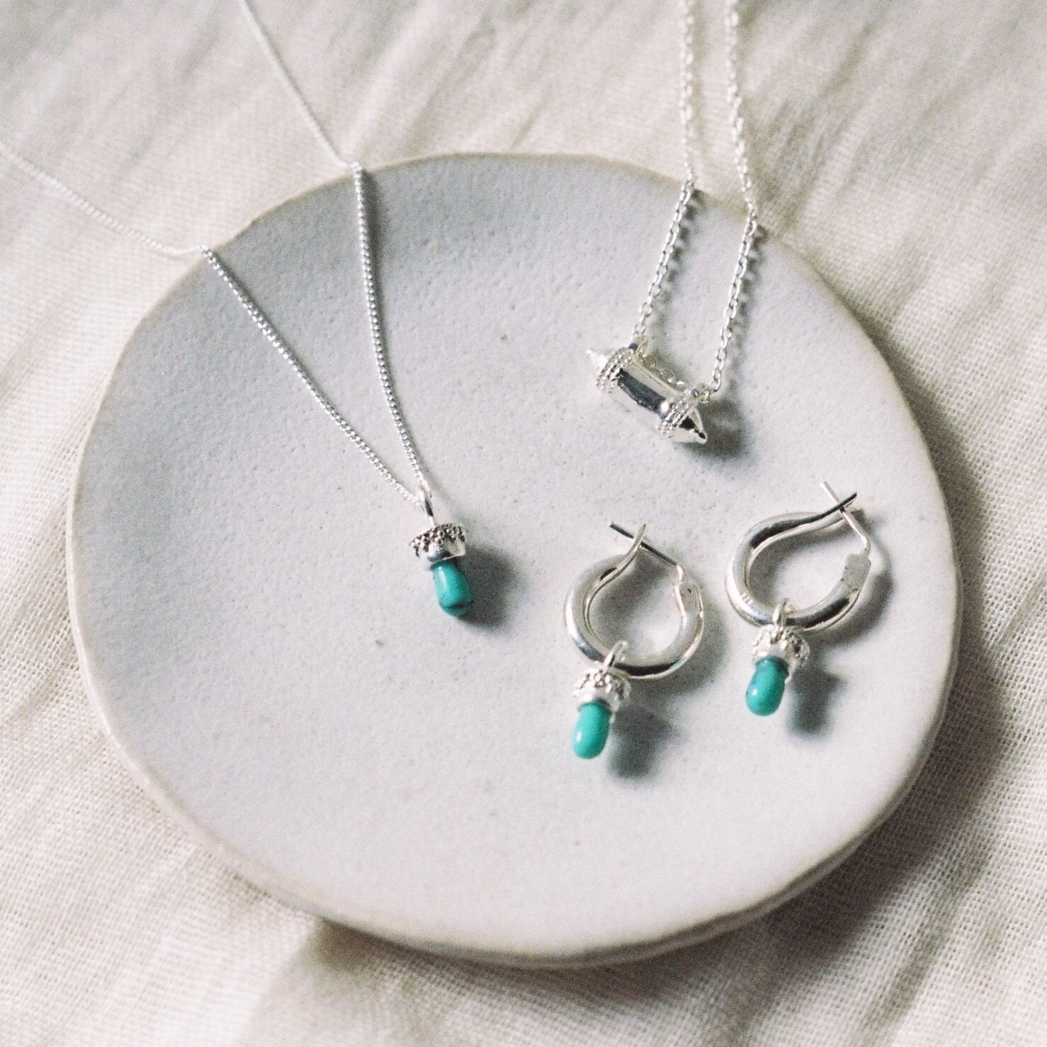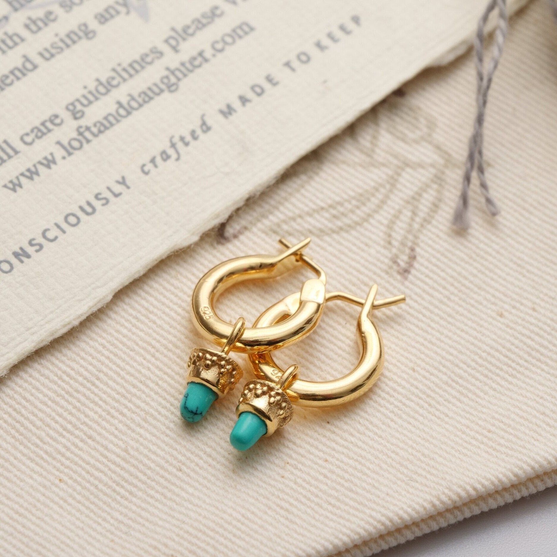 Only 1 in 10,000 acorns will eventually develop into the mighty oak tree. Wear these small turquoise drop hoops as a reminder of your potential and strength. Tiny, sure, but oh so mighty...