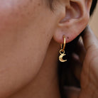 These cute 14mm hoops feature radiant moon charms, designed to be stacked and mix & matched with our other interchangeable charm earrings.