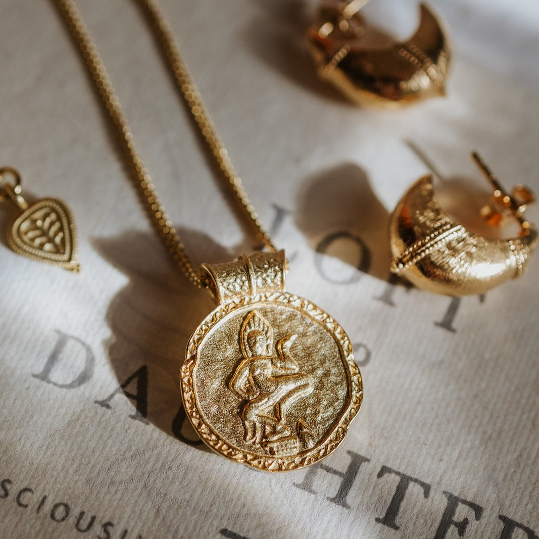 Inspired by the sacred carvings of Angkor Wat, our Forever Young pendant honours the ethereal Apsara, the celestial dancers of divine femininity, renewal & eternal youth.
