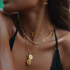 Styling tip; Coin pendant can be worn in combination with our Arambol Pearls, simply slide off and swap the chain for the pearls for a completely different look…