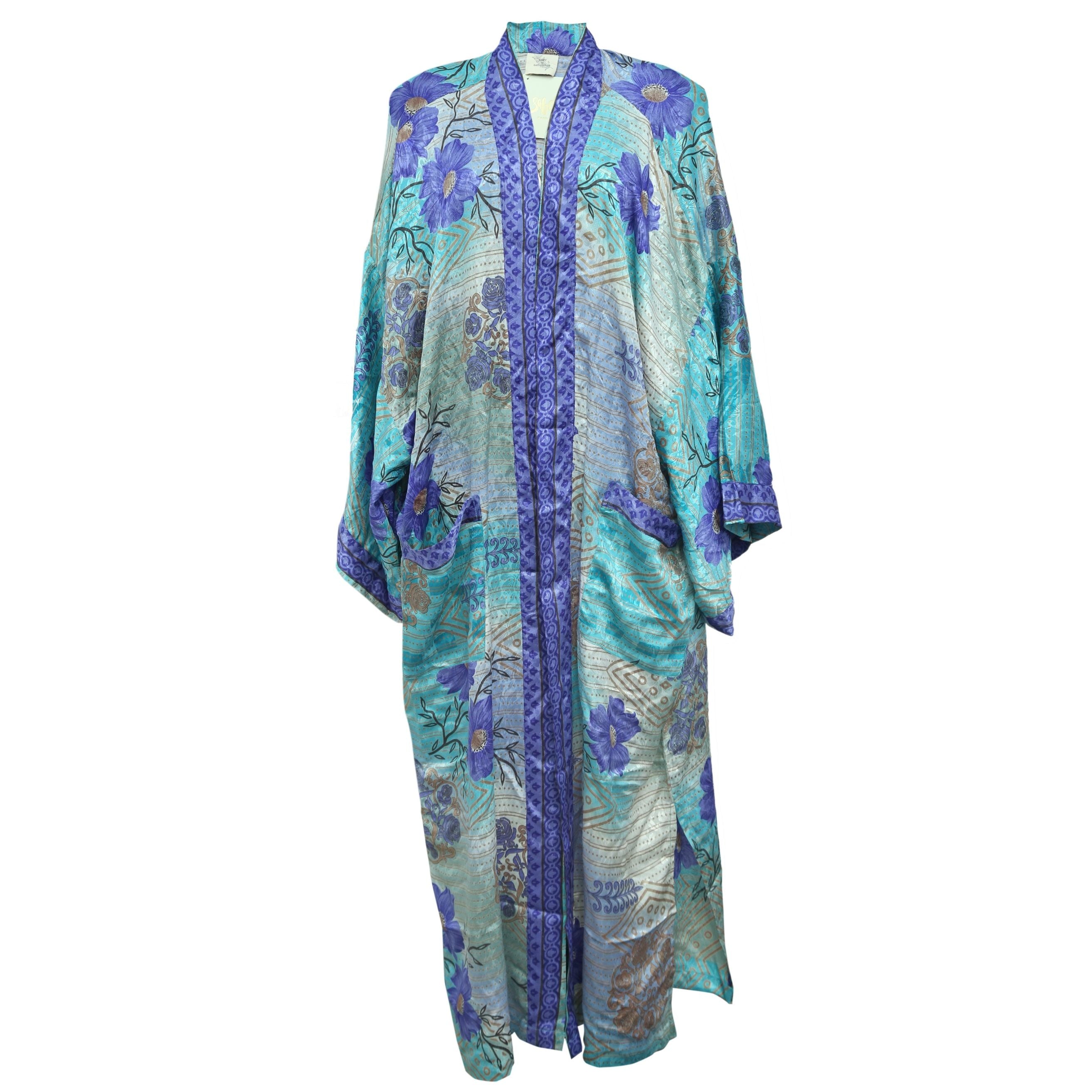Now reimagined and co-created by empowered female artisans in rural India, our If Saris Could Talk Kimonos are lovingly created from pre-loved saris sourced from all corners of India, and hand-selected for their beautiful prints. Each kimono is one of a kind, no two are the same.