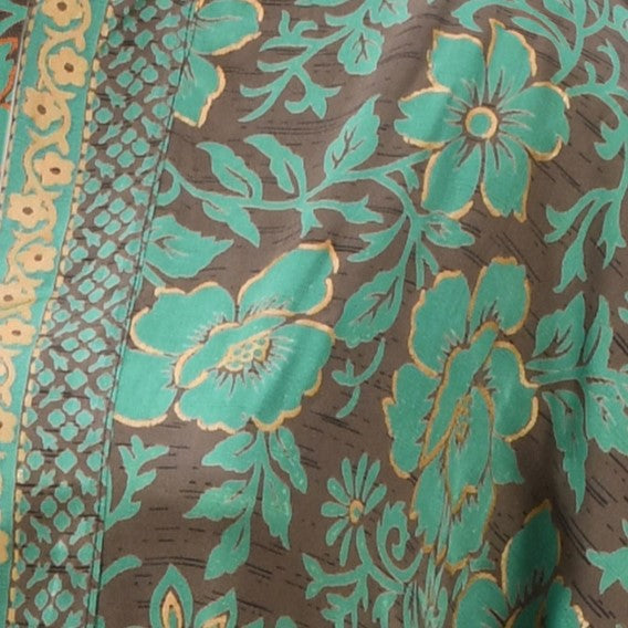 Fabric: Preloved silk/viscose mix saris (exact fabric content unknown due to the nature of using upcycled fabric)