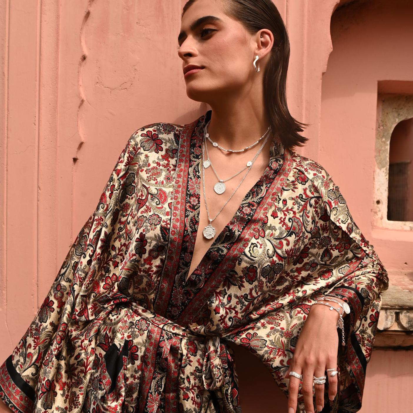 Now reimagined and co-created by empowered female artisans in rural India, our If Saris Could Talk Kimonos are lovingly created from pre-loved saris sourced from all corners of India, and hand-selected for their beautiful prints. Each kimono is one of a kind, no two are the same.