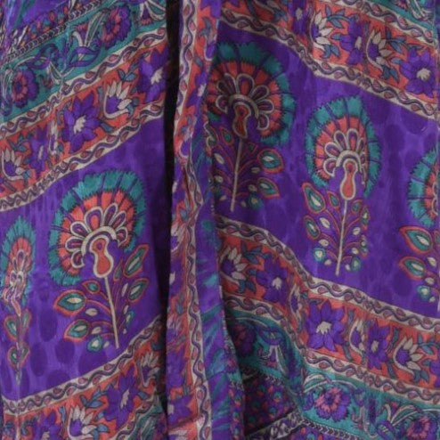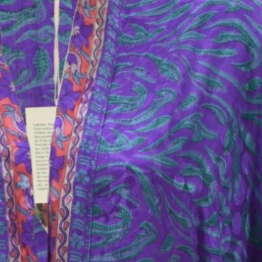 Fabric: Preloved silk/viscose mix saris (exact fabric content unknown due to the nature of using upcycled fabric)