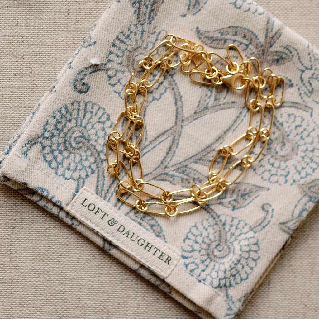 One pouch per order (unless ordering items at risk of tangling such as pendants, which will have their own pouch). If you would like more than one pouch (for gifting purposes) please include in the note at checkout or email hello@loftanddaughter.com