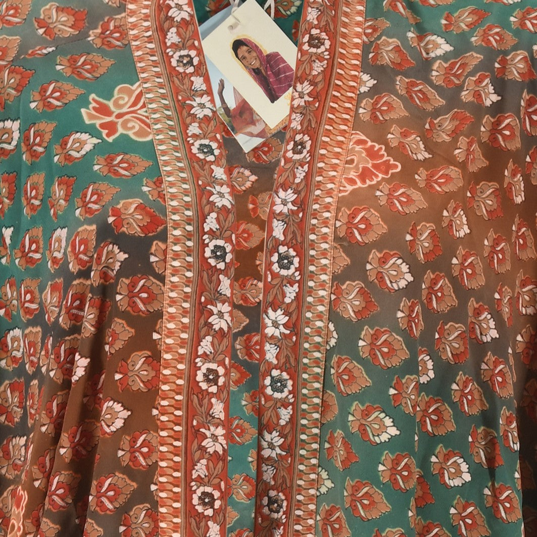 Fabric: Preloved silk/viscose mix saris (exact fabric content unknown due to the nature of using upcycled fabric)