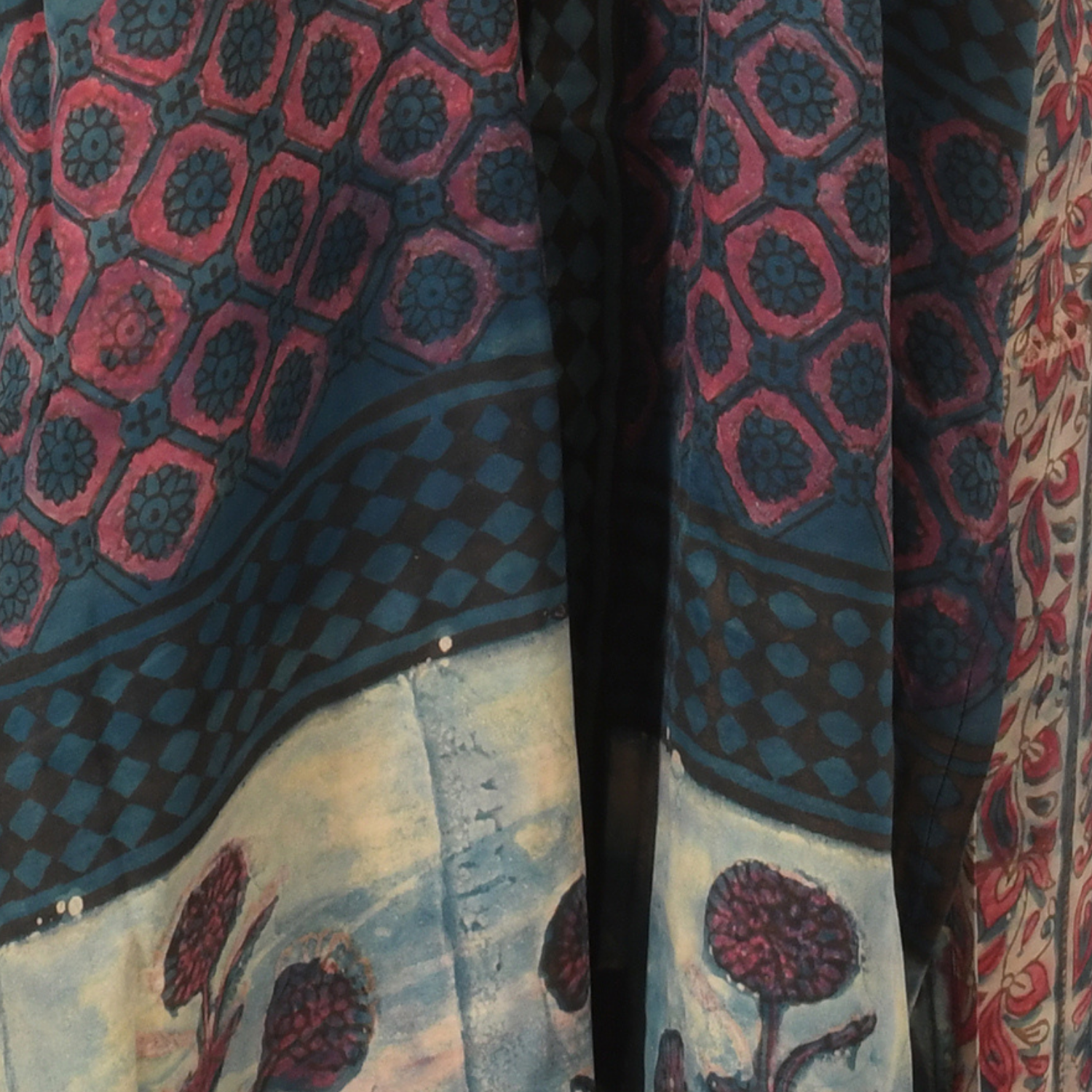 Fabric: Preloved viscose mix saris (exact fabric content unknown due to the nature of using upcycled fabric)