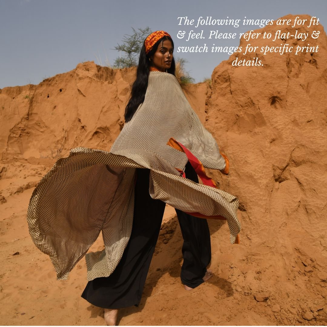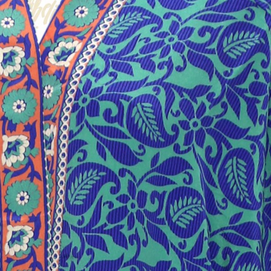 Fabric: Preloved viscose mix saris (exact fabric content unknown due to the nature of using upcycled fabric)