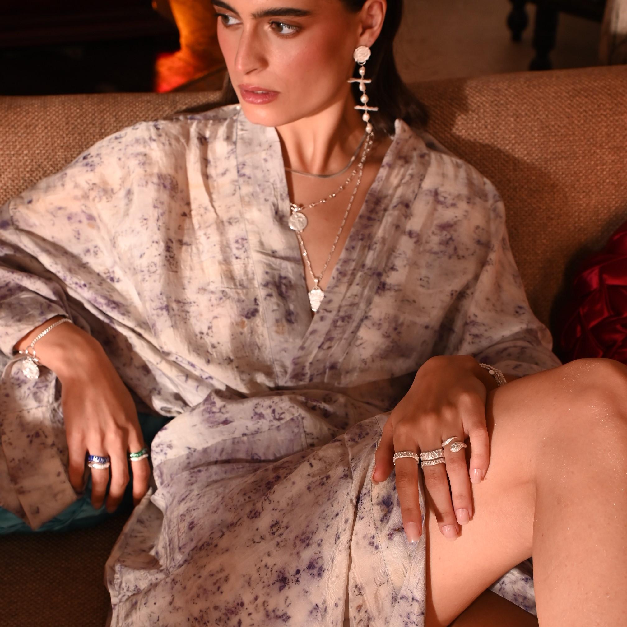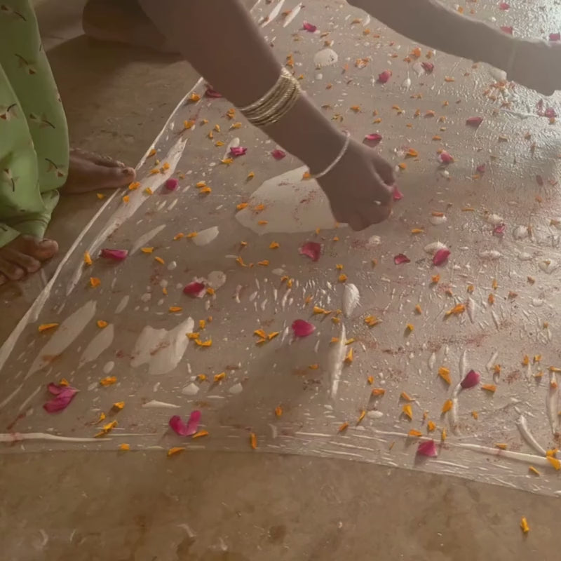 Each robe is infused with the soft hues of flower petals, roots, leaves & minerals, creating delicate colours & patterns that are as unique as the stories they tell- whispers of Mother Nature's wonders and the hands of the women who brought them to life.