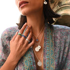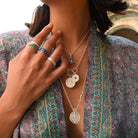 Engraved with the words Let go, anything is possible, and with our evil eye coin offering protection & safety, our double coin pendant reminds us that we, like life, are everchanging & fluid, and the magic of possibilities lay within & before us...