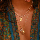CHARM ONLY. Images show styling suggestions for how to wear the charm on your necklaces.