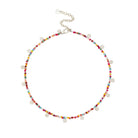 Dainty handcrafted coins hang from a fun, rainbow multi-coloured bead choker. Pair with further beaded necklaces, pearls & silver pendants for a perfect summer look.