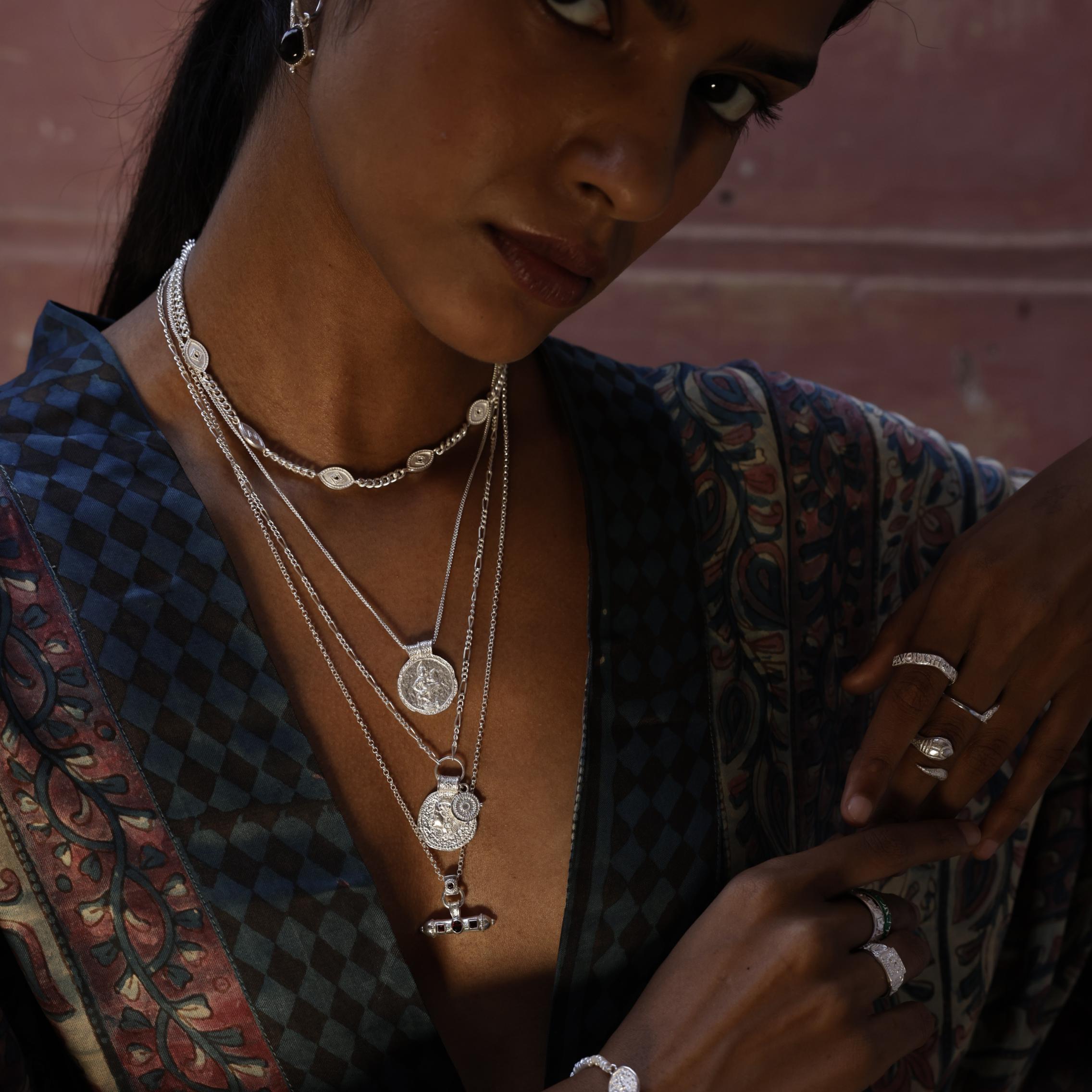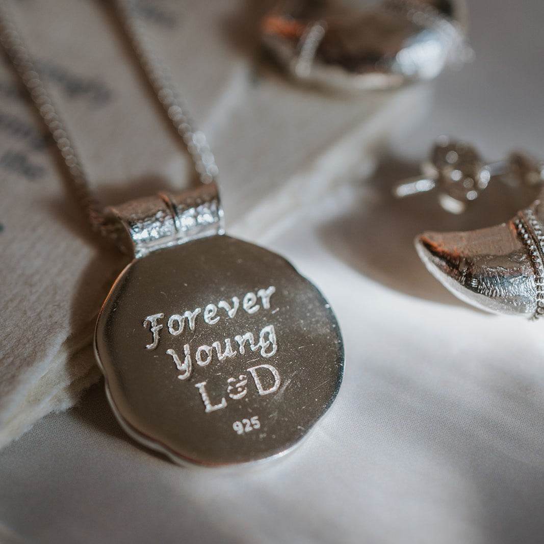 Engraved with the words Forever Young on the reverse & handcrafted with fluid curves to echo the Apsara's dance, this pendant celebrates womanhood in all its chapters, the rising, the becoming, the ever-renewing.