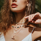 Styling tip; Coin pendant can be worn in combination with our Arambol Pearls, simply slide off and swap the chain for the pearls for a completely different look…