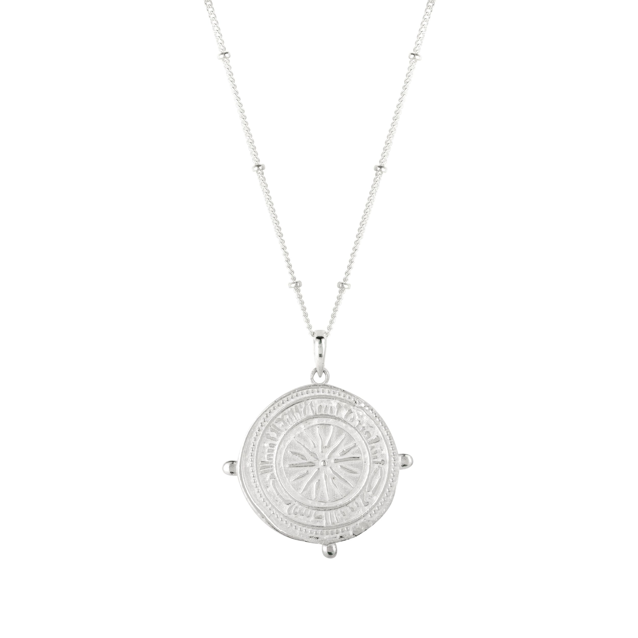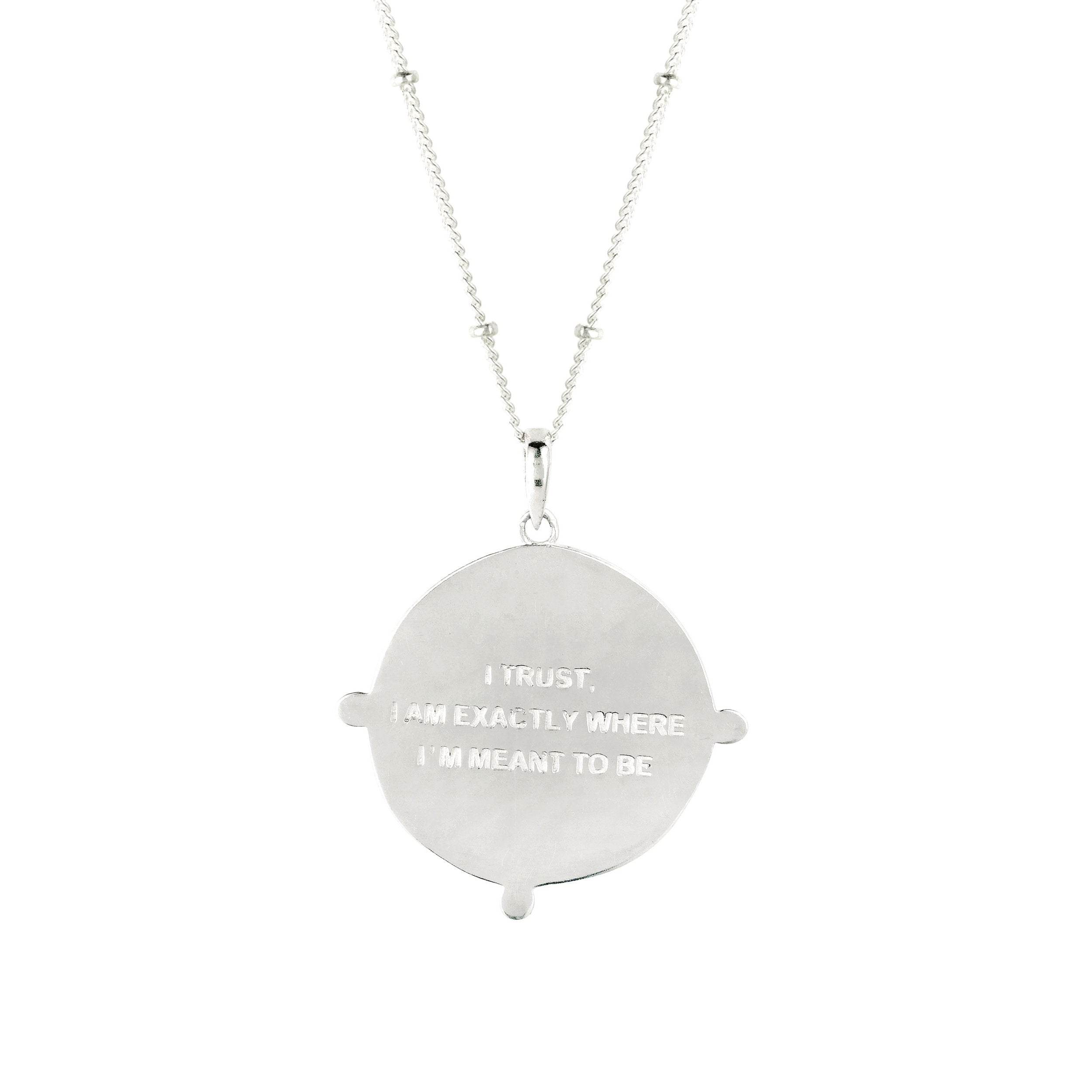 Turn the pendant over to reveal brighter days ahead. Our radiant sun beams the words Ad Meloria (towards better things), bringing endless possibilities with each breaking of the dawn.