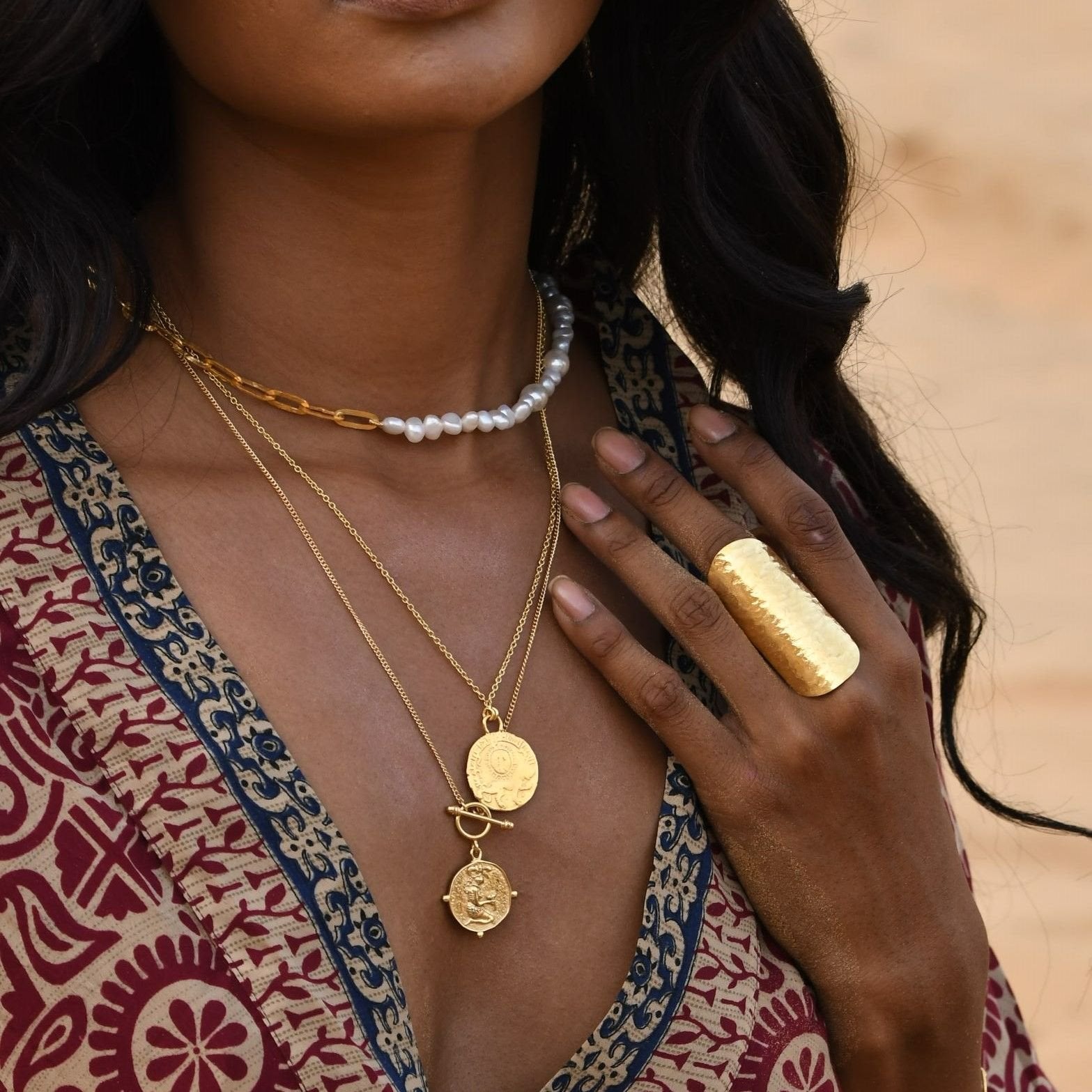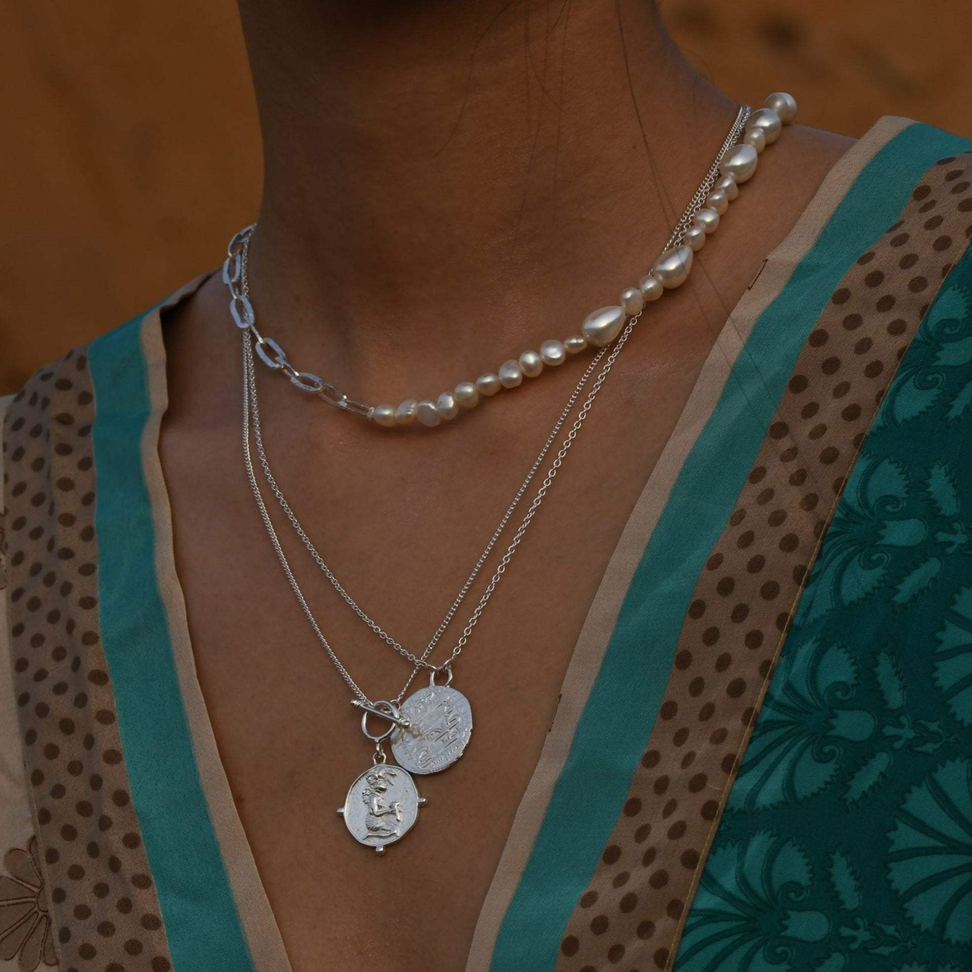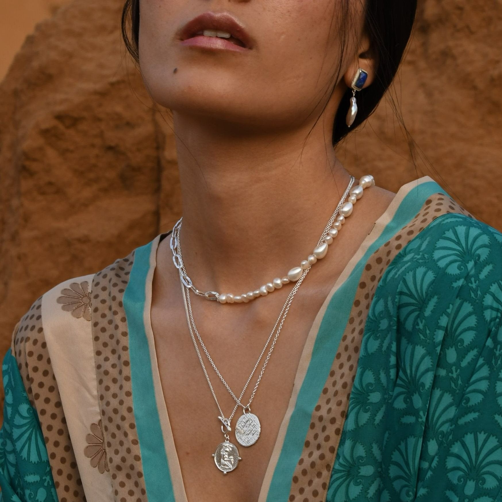 Our best-selling Protectress pendant is now available on our Arambol Pearl choker.