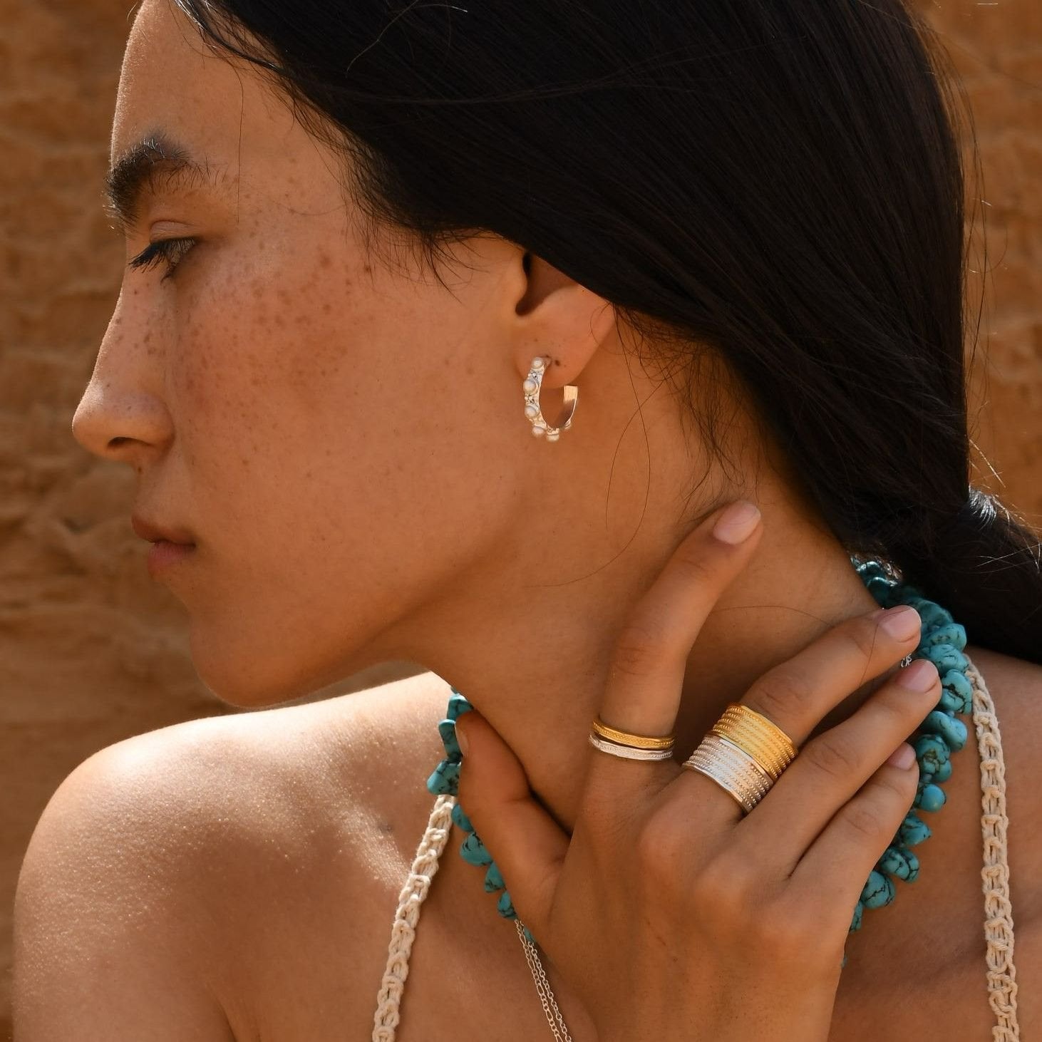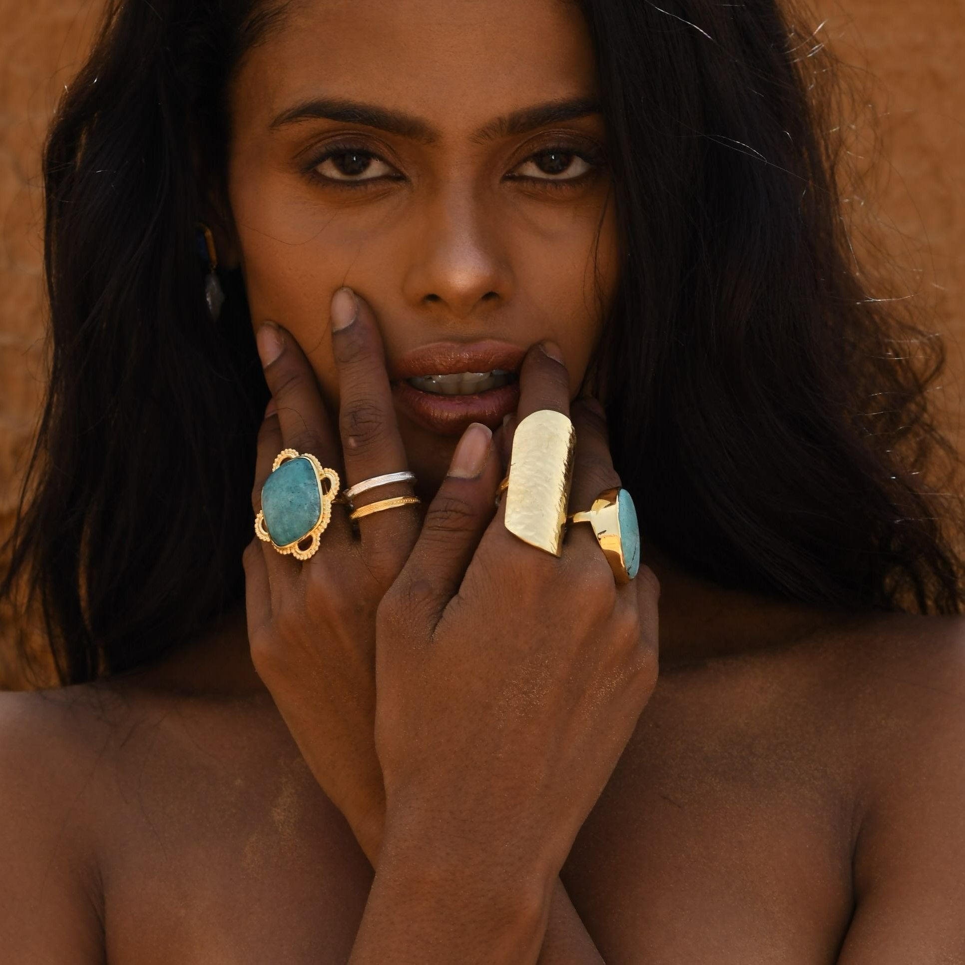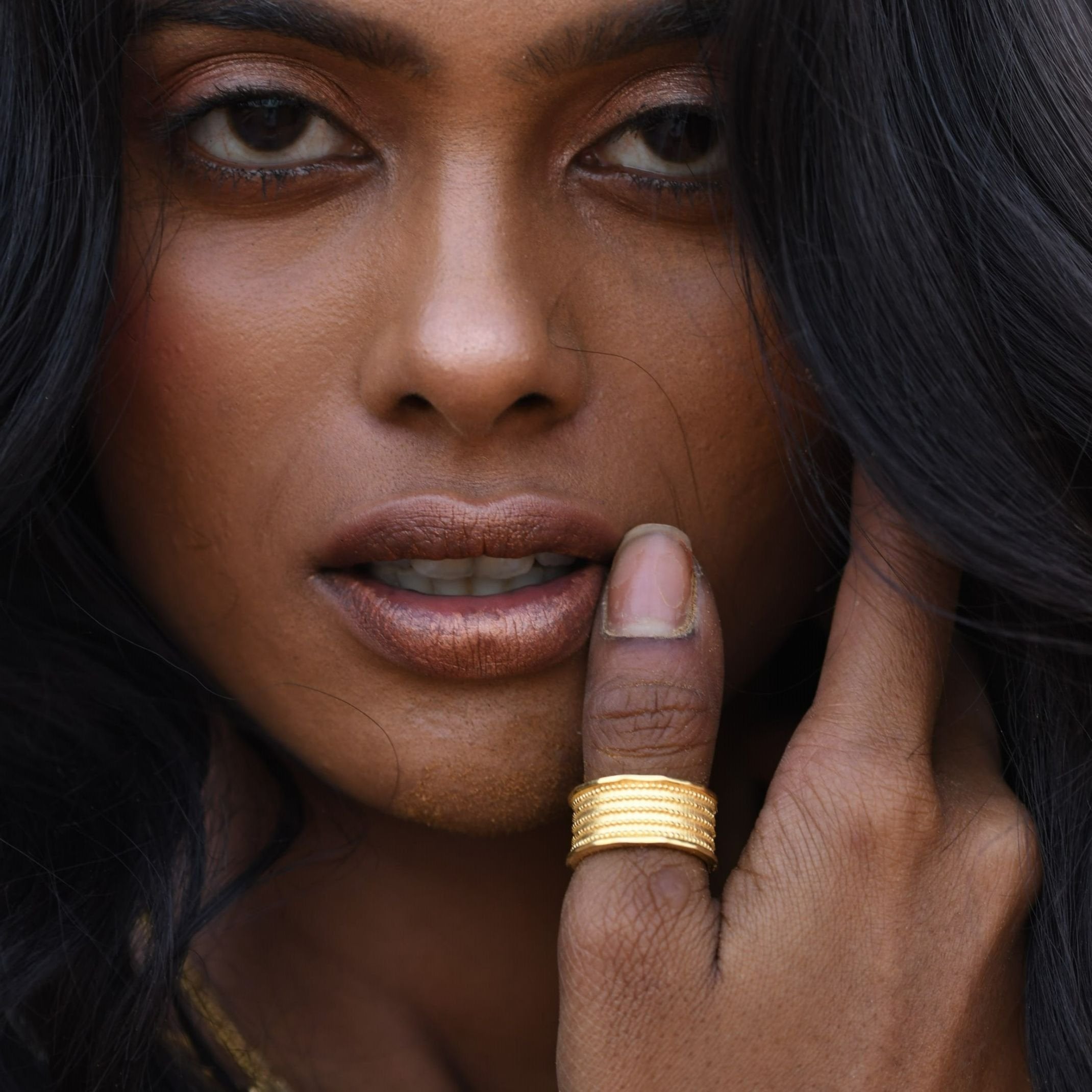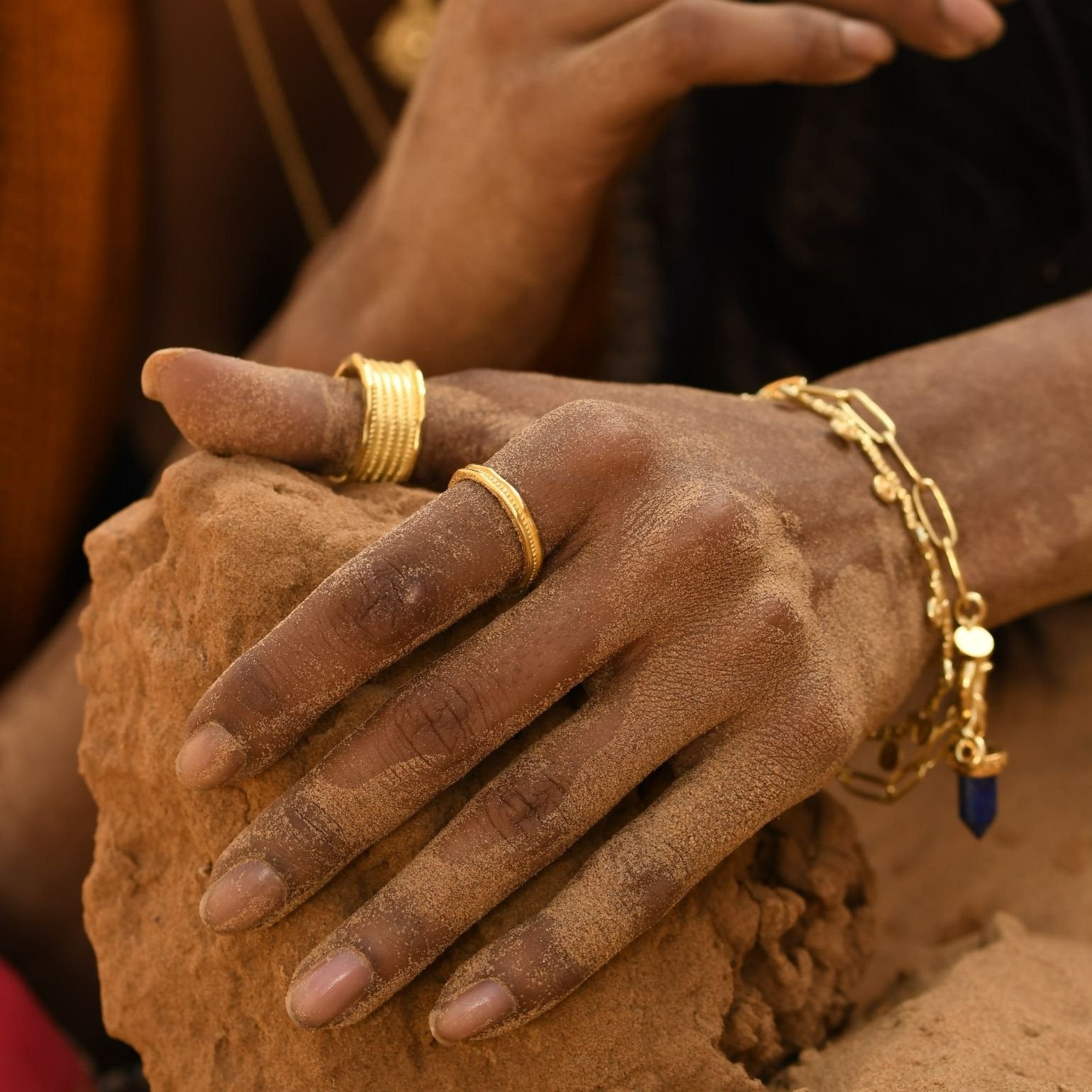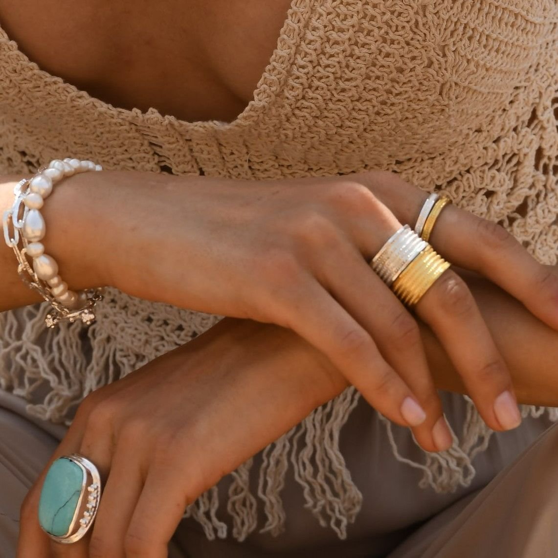 Designed to be worn alone, or stacked with the Skinny Relic ring (in either colour), this radiant spinner ring is beautifully imperfect & demands attention. Wear it your way…
