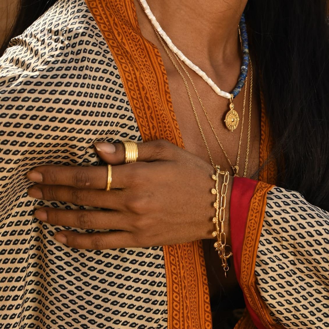 Each piece comes packaged in a soft organic pouch, which has been lovingly made by some of Jaipur’s most vulnerable women, who are bettering their lives through the income from the block printing, tassel making and stitching of these very pouches. No two are the same, each one beautiful in its imperfections.