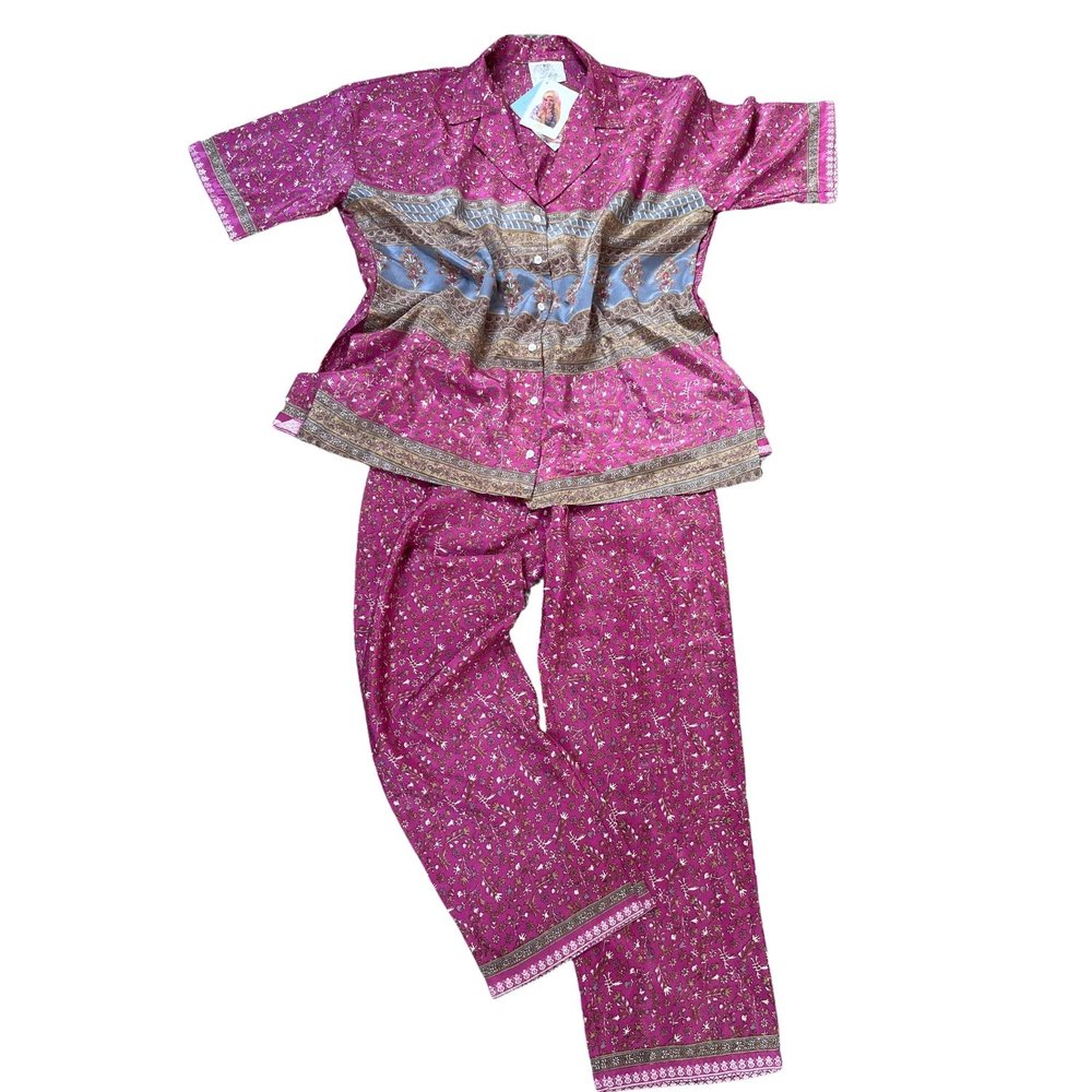 Now reimagined and co-created by empowered female artisans in rural India, our Once Upon A Sari co-ords/ pyjamas, are lovingly created from pre-loved saris sourced from all corners of India, and hand-selected for their beautiful prints. Each set is one of a kind, no two are the same.