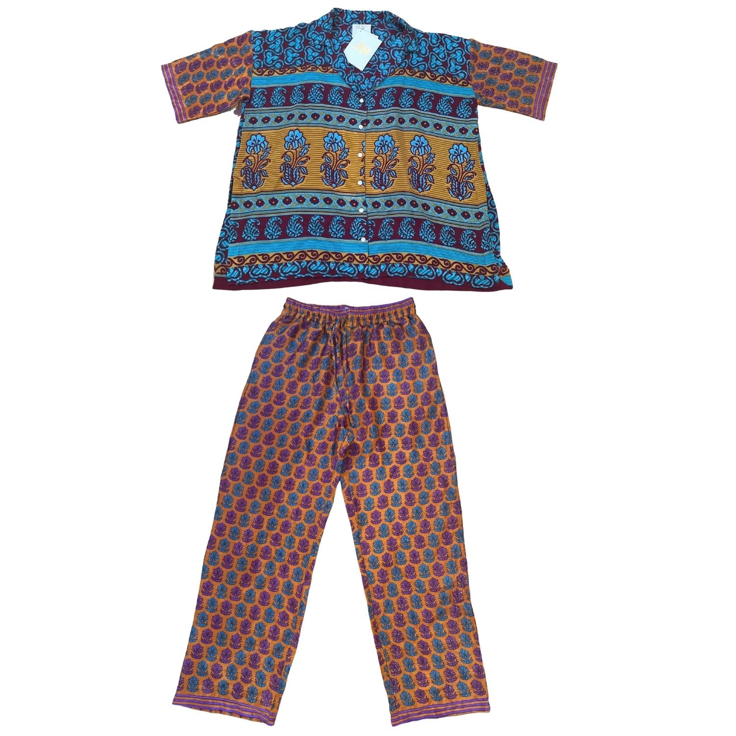 Now reimagined and co-created by empowered female artisans in rural India, our Once Upon A Sari co-ords/ pyjamas, are lovingly created from pre-loved saris sourced from all corners of India, and hand-selected for their beautiful prints. Each set is one of a kind, no two are the same.