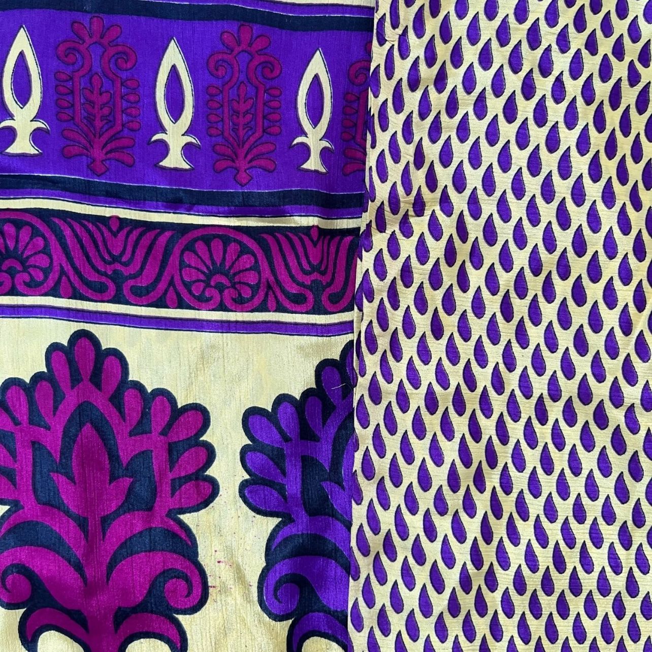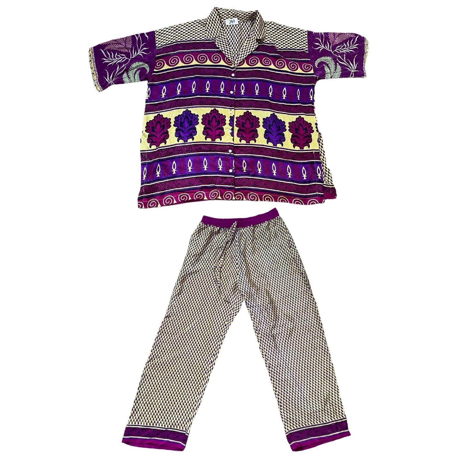 Now reimagined and co-created by empowered female artisans in rural India, our Once Upon A Sari co-ords/ pyjamas, are lovingly created from pre-loved saris sourced from all corners of India, and hand-selected for their beautiful prints. Each set is one of a kind, no two are the same.