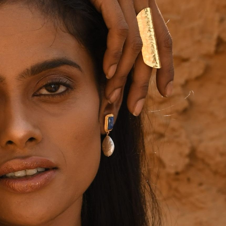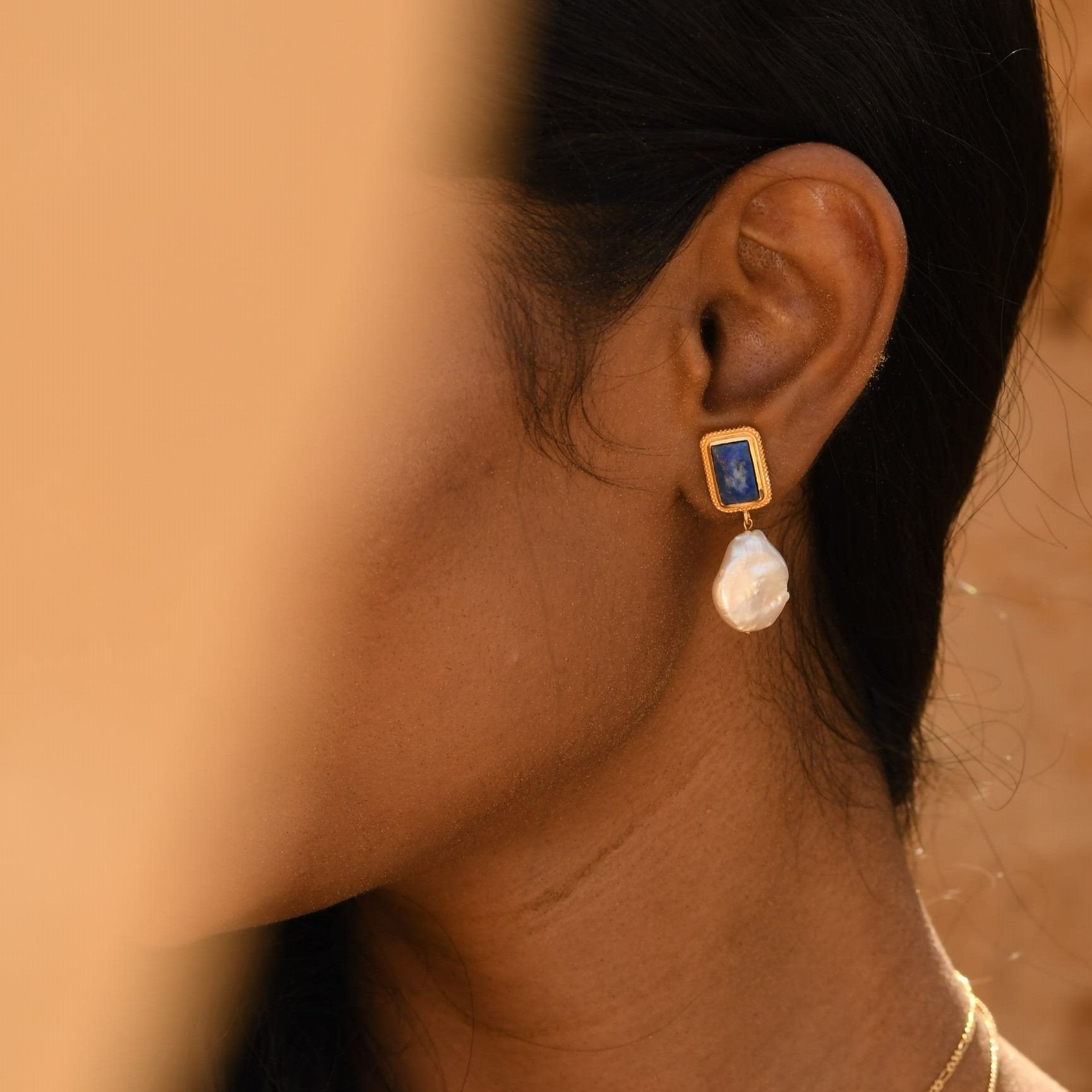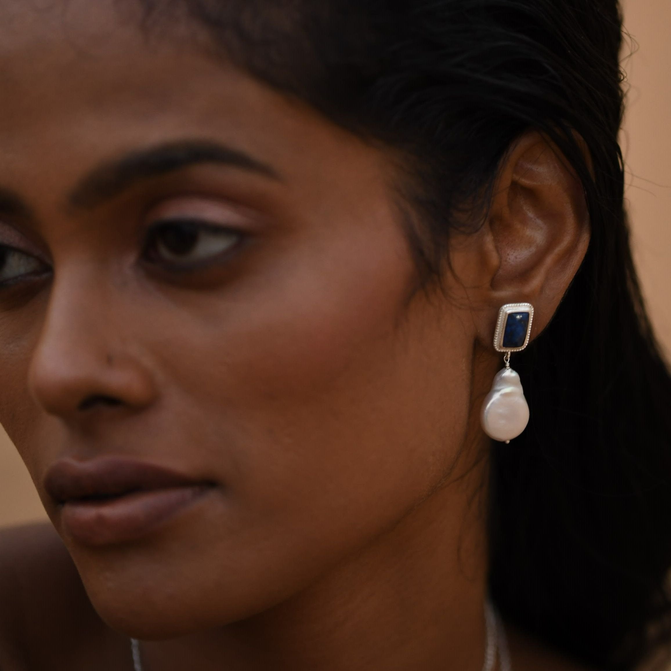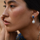 The deep blue stone & lustrous pearl create a chic colour combination which feels timeless, unique & elegant.