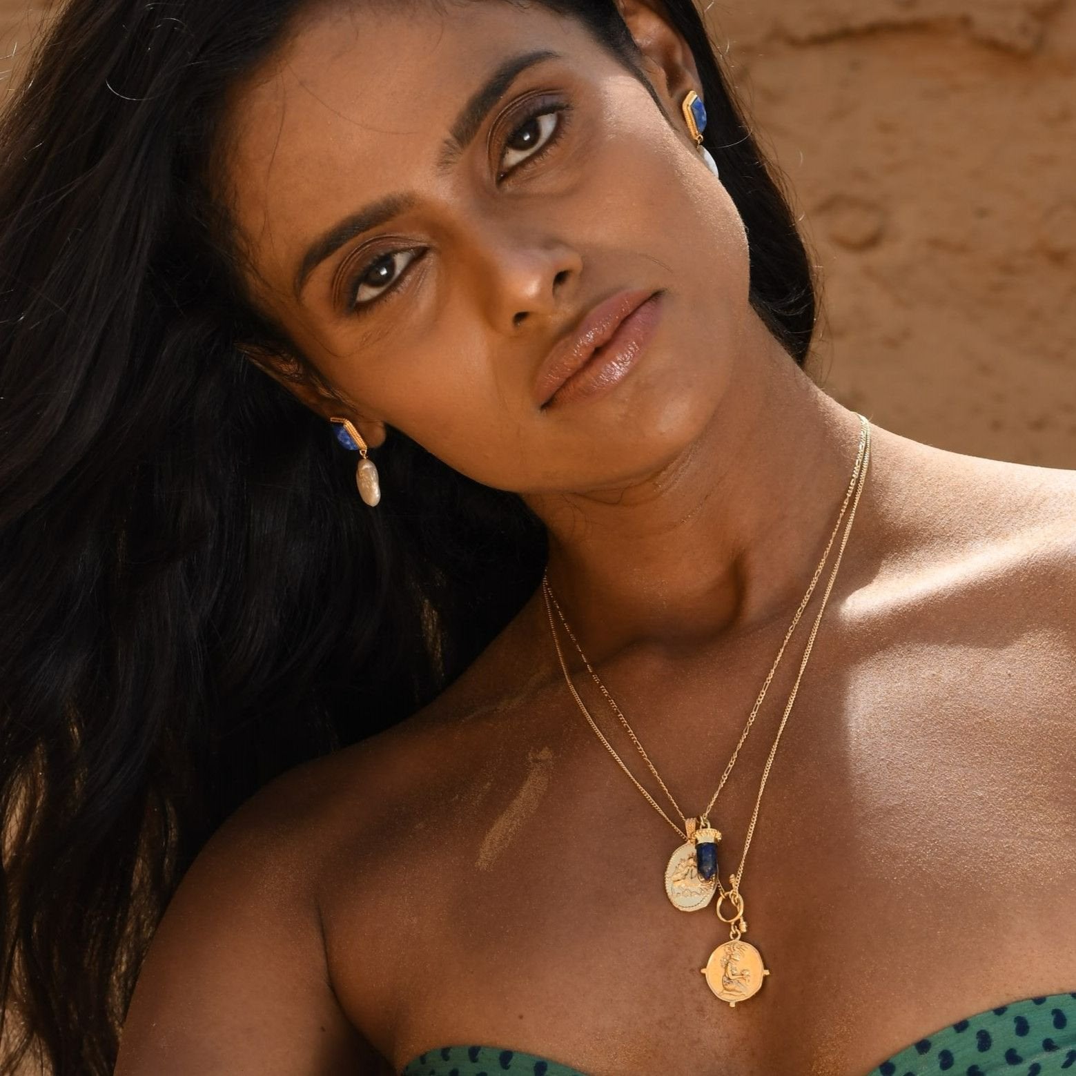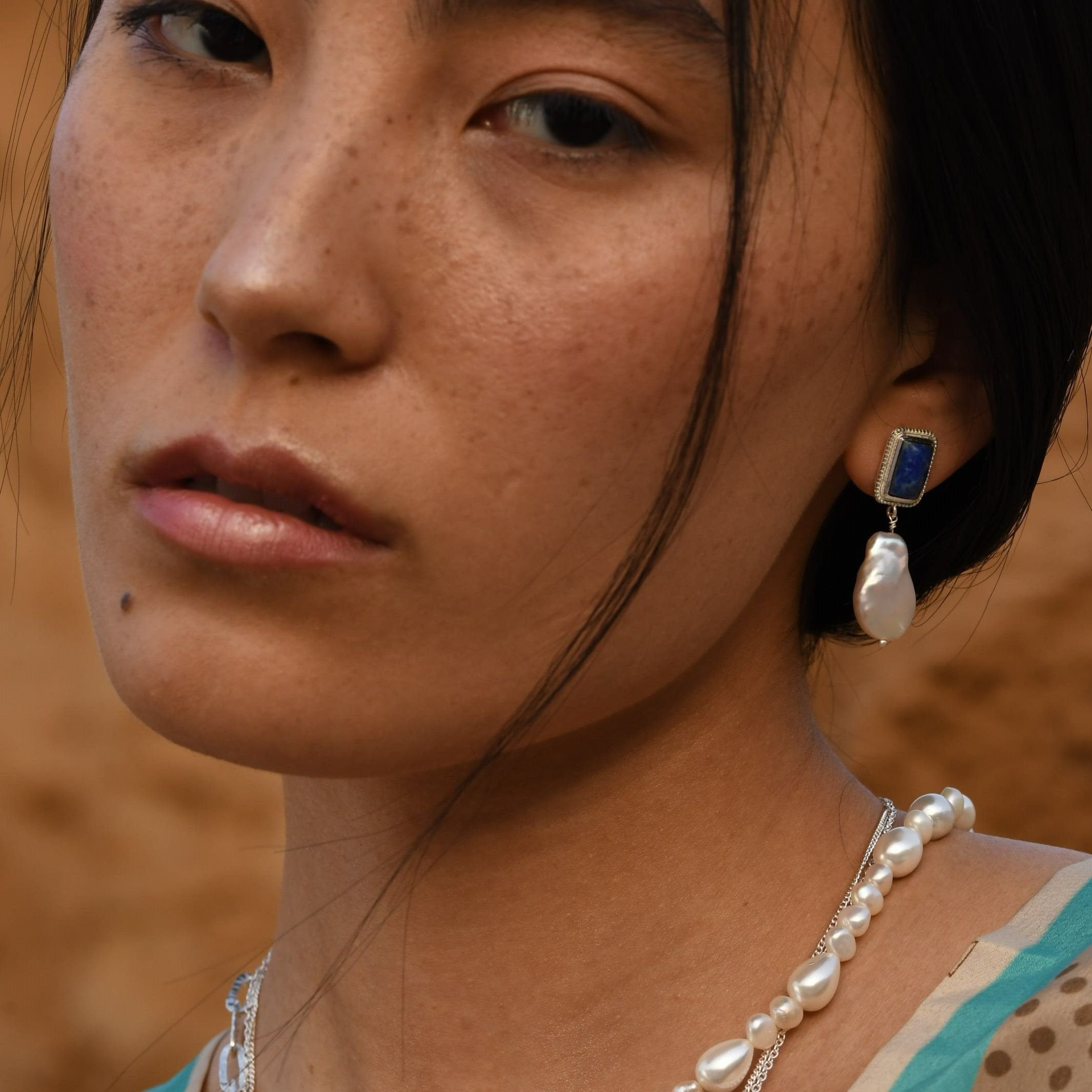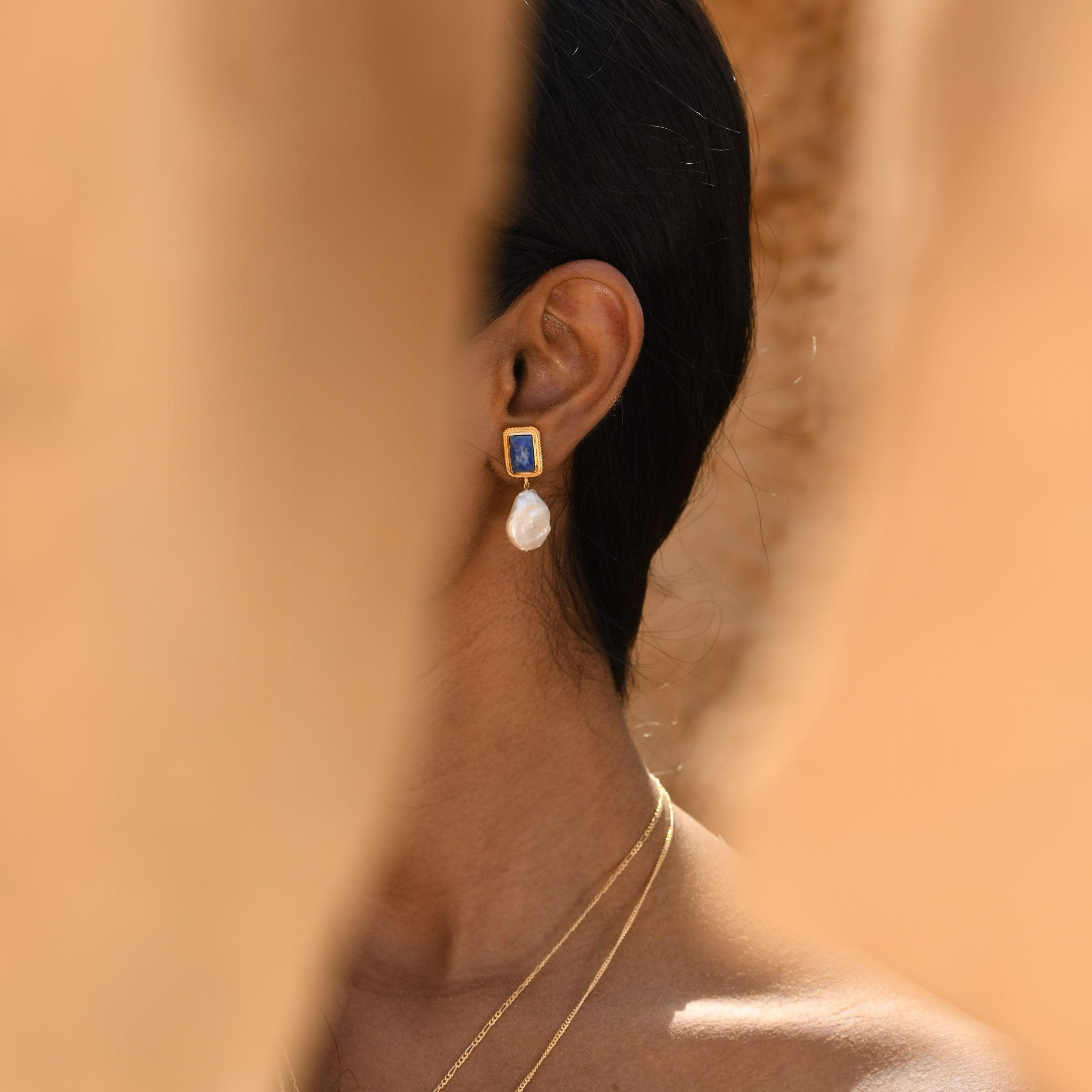 The deep blue stone & lustrous pearl create a chic colour combination which feels timeless, unique & elegant.