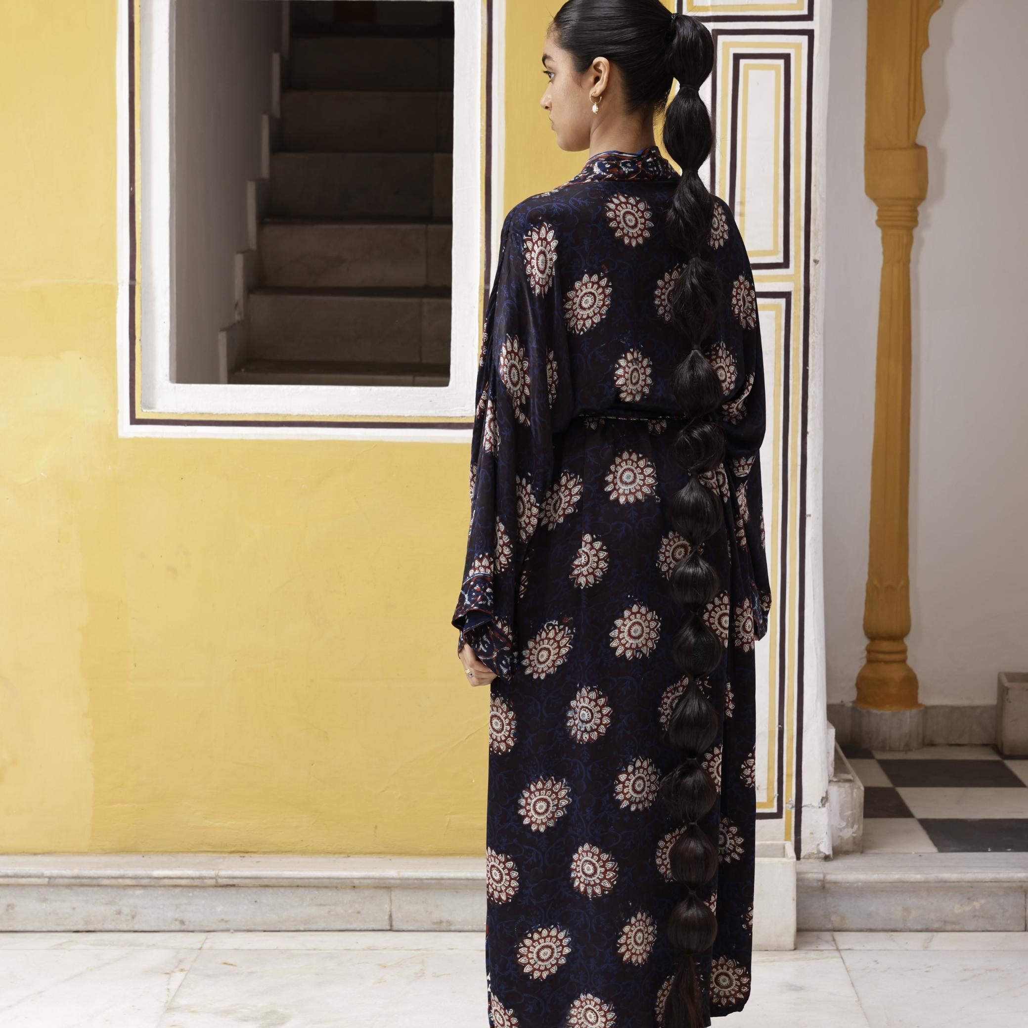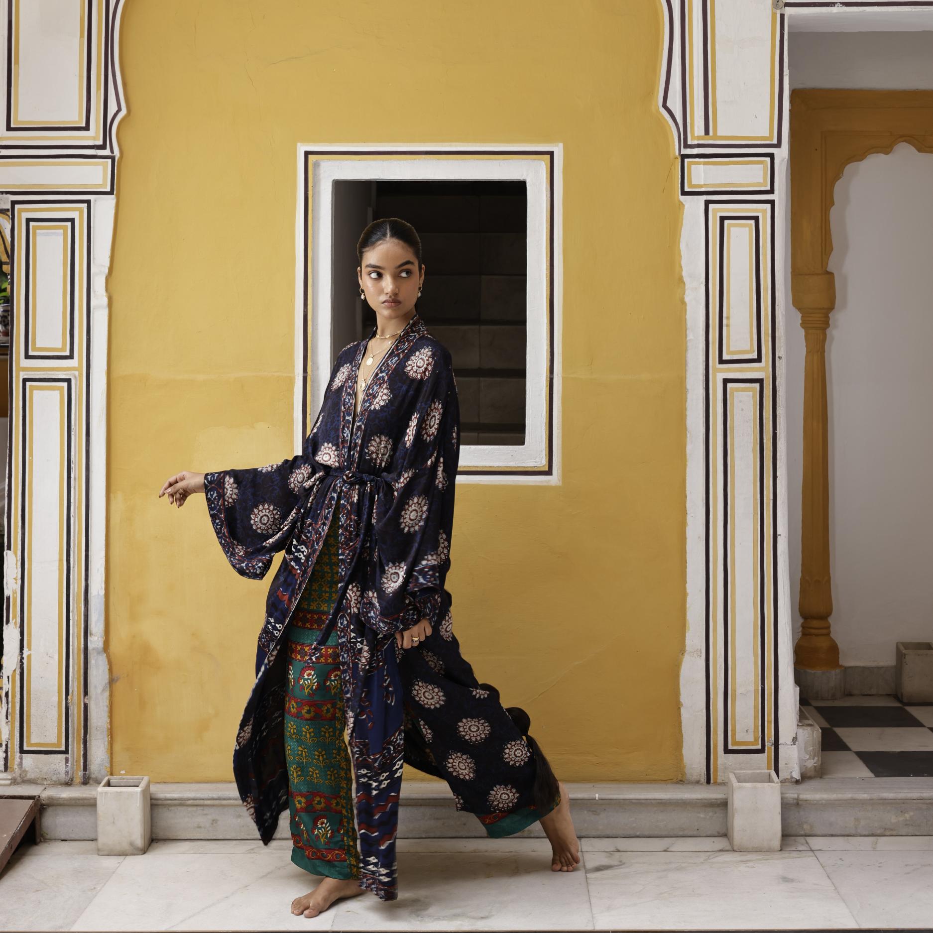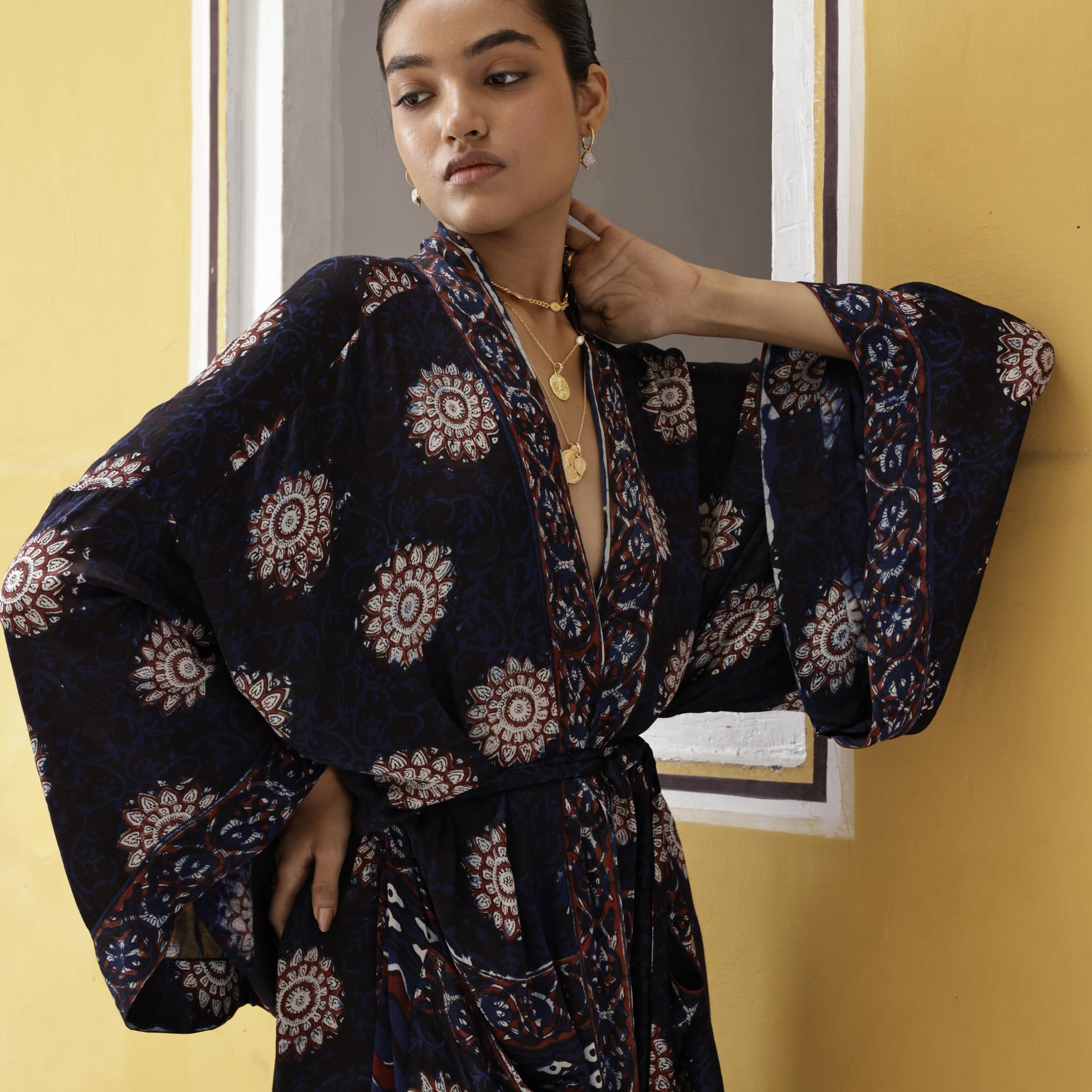 If Saris Could Talk Maxi Kimono- Midnight Mandala