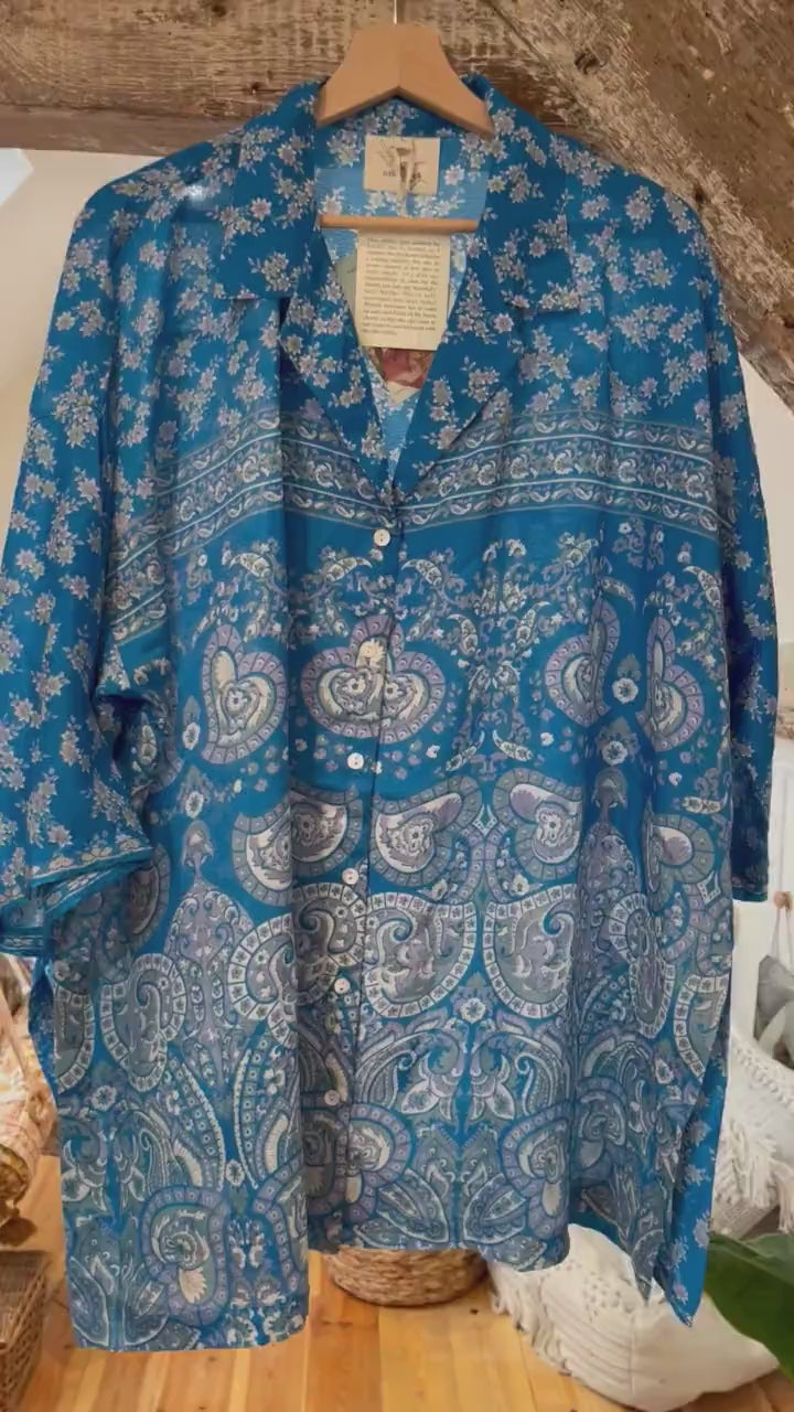 Now reimagined and co-created by empowered female artisans in rural India, our Once Upon A Sari co-ords/ pyjamas, are lovingly created from pre-loved saris sourced from all corners of India, and hand-selected for their beautiful prints. Each set is one of a kind, no two are the same.