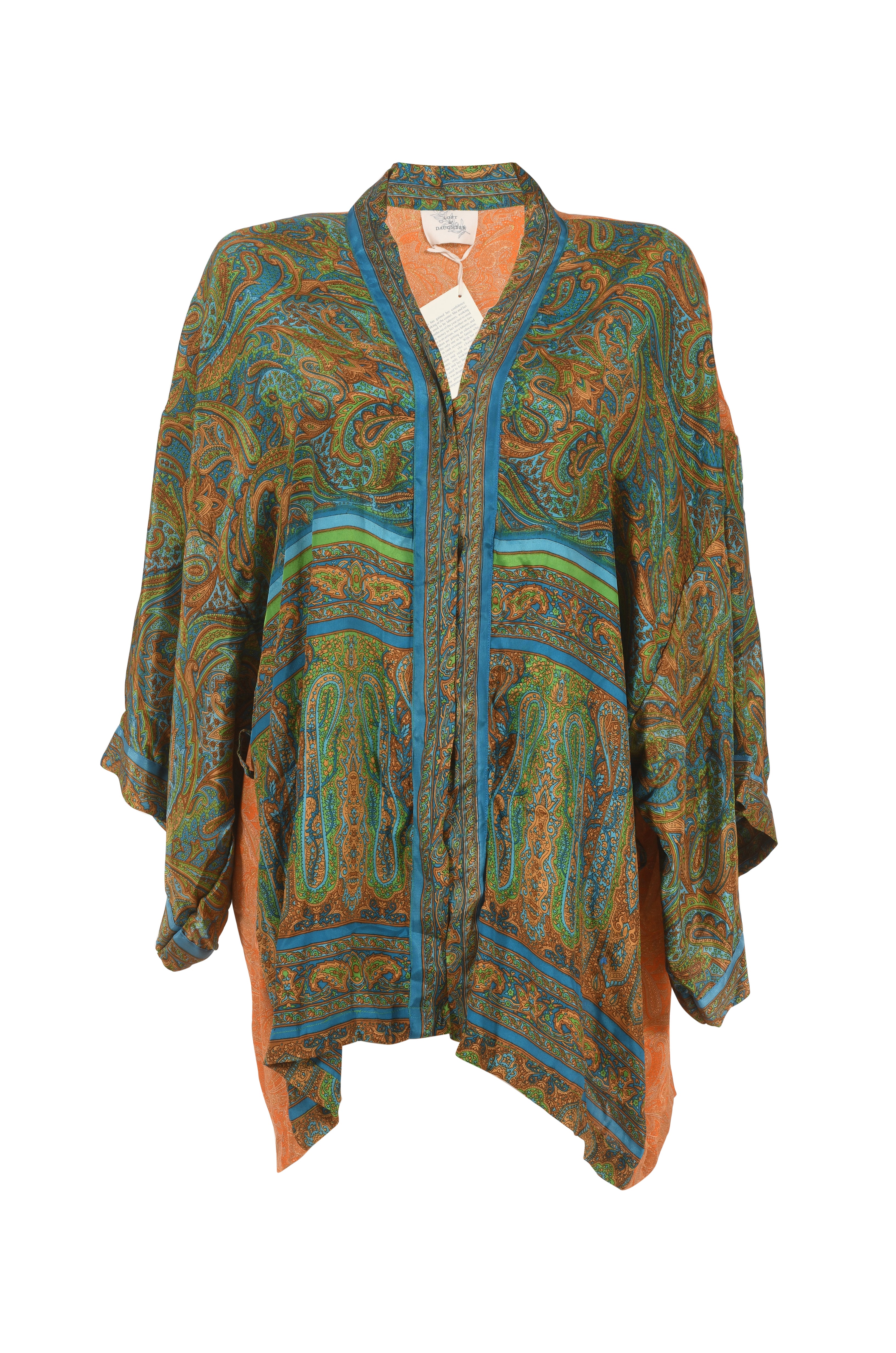 If Saris Could Talk Kimono- Emerald Paisley Surprise