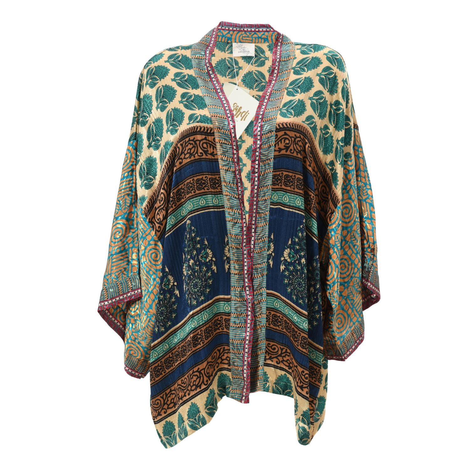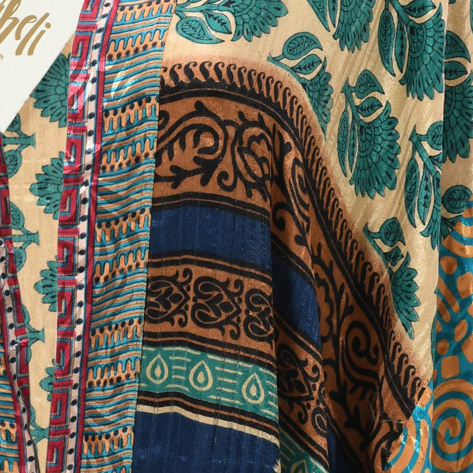 Now reimagined and co-created by empowered female artisans in rural India, the If Saris Could Talk Kimonos are lovingly created from pre-loved saris sourced from all corners of India, and hand-selected for their beautiful prints. Each kimono is one of a kind, no two are the same.