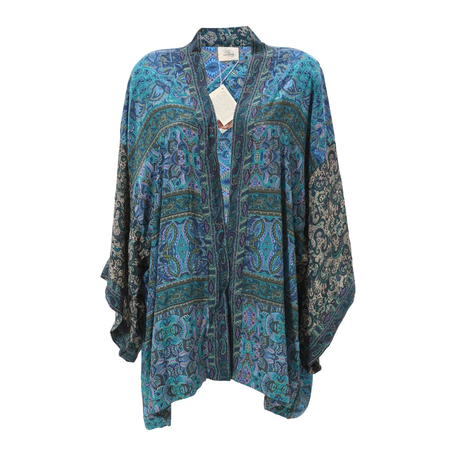 Now reimagined and co-created by empowered female artisans in rural India, the If Saris Could Talk Kimonos are lovingly created from pre-loved saris sourced from all corners of India, and hand-selected for their beautiful prints.Each kimono is one of a kind, no two are the same.