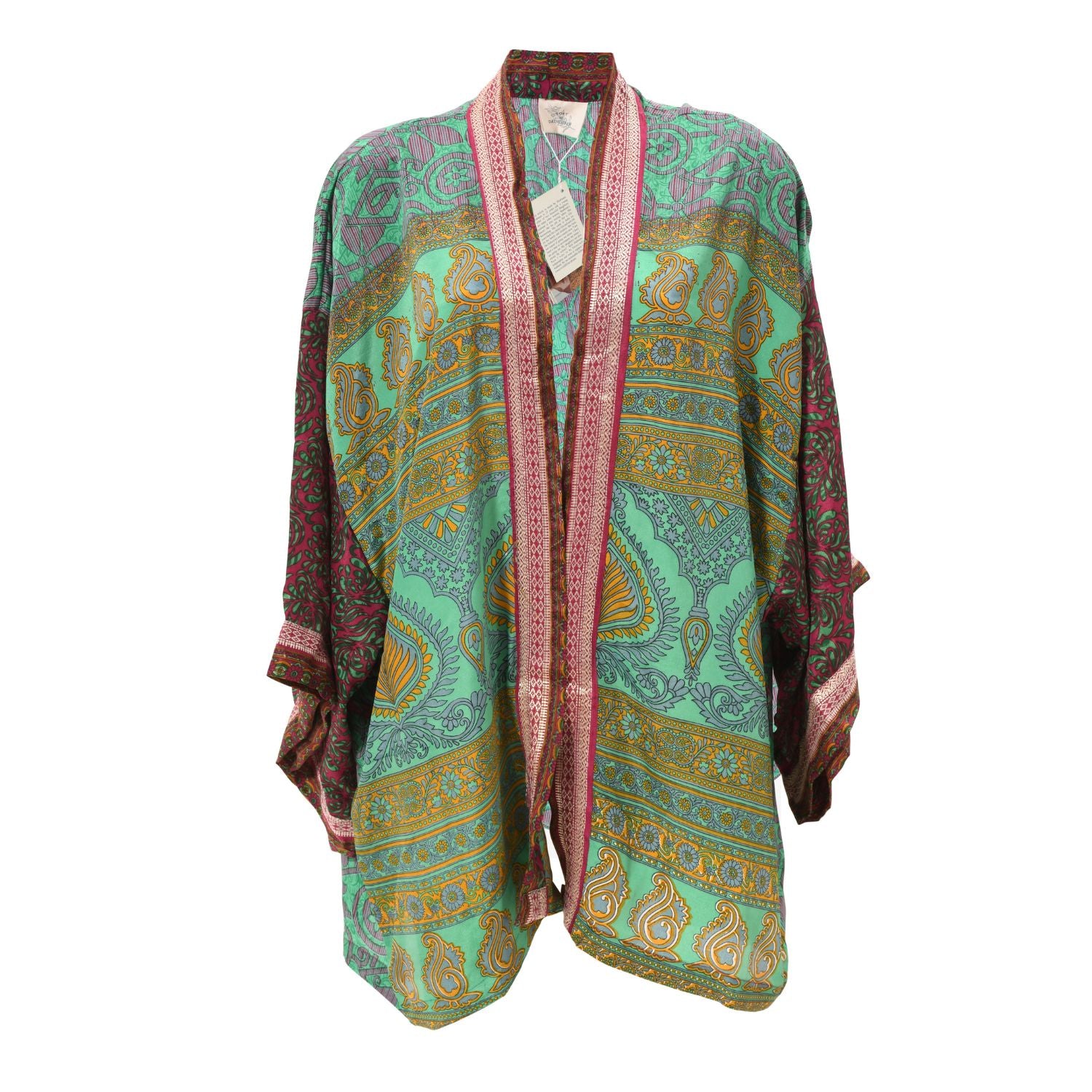 Now reimagined and co-created by empowered female artisans in rural India, the If Saris Could Talk Kimonos are lovingly created from pre-loved saris sourced from all corners of India, and hand-selected for their beautiful prints.Each kimono is one of a kind, no two are the same.