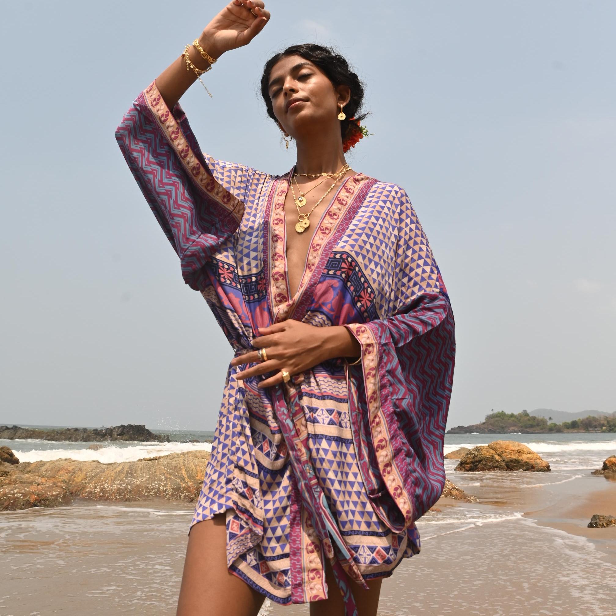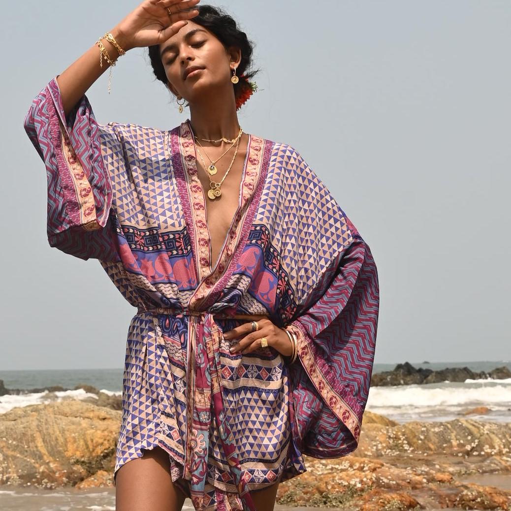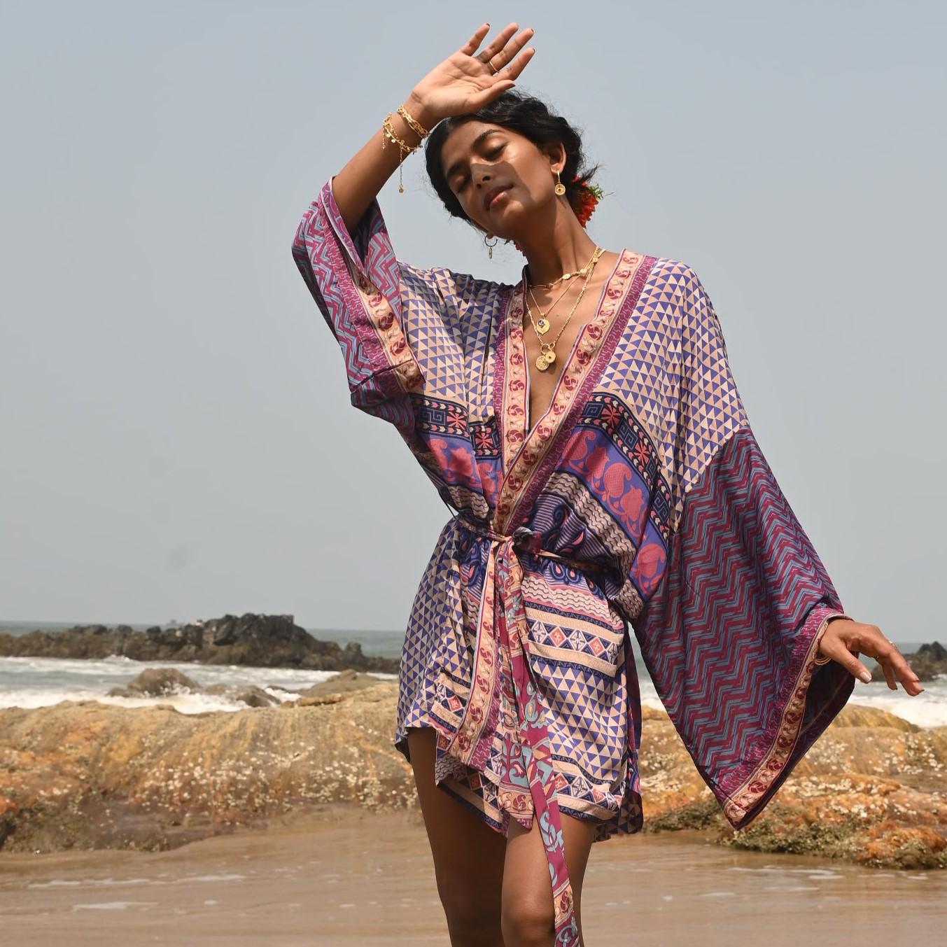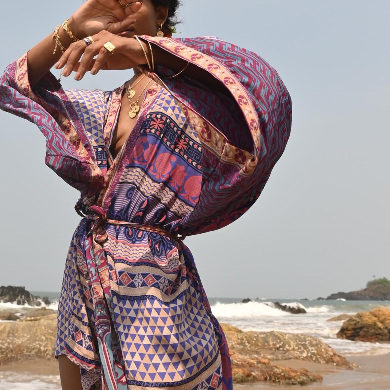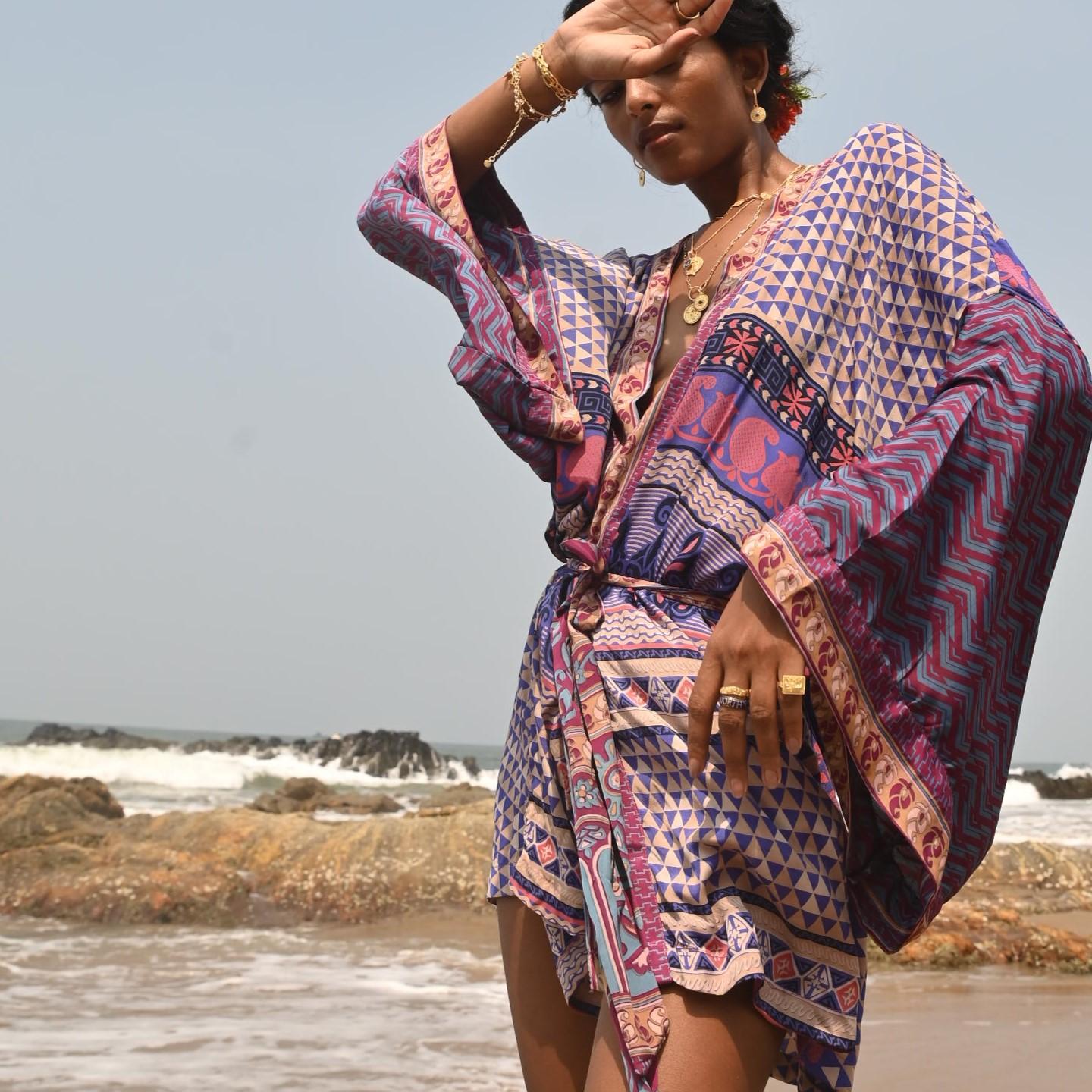 Now reimagined and co-created by empowered female artisans in rural India, the If Saris Could Talk Kimonos are lovingly created from pre-loved saris sourced from all corners of India, and hand-selected for their beautiful prints. Each kimono is one of a kind, no two are the same.