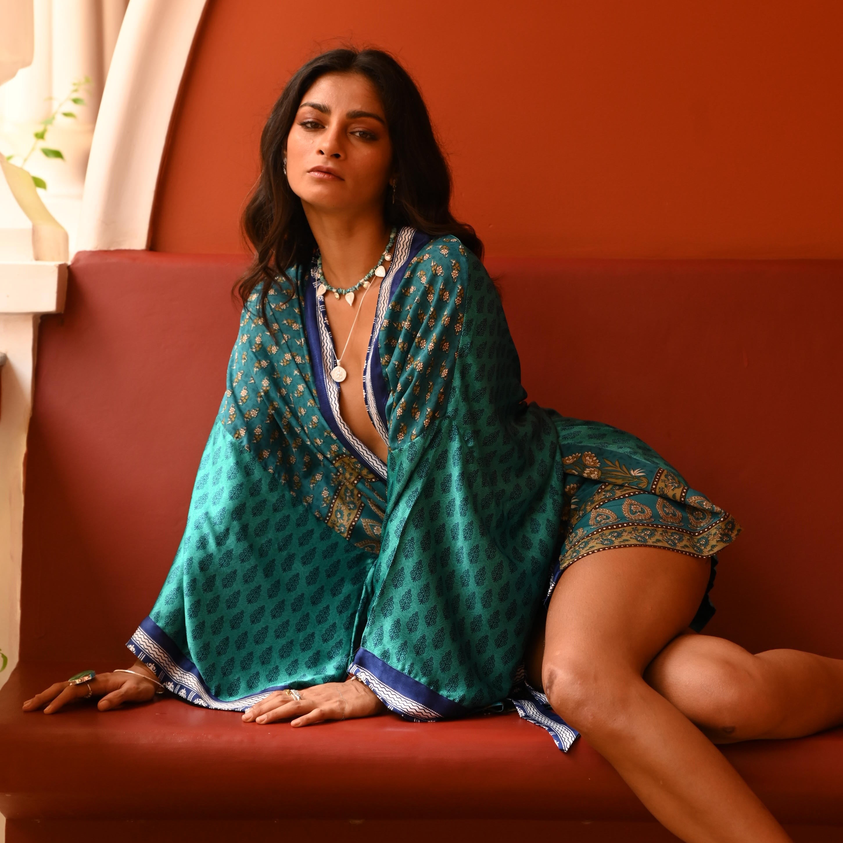 Now reimagined and co-created by empowered female artisans in rural India, the If Saris Could Talk Kimonos are lovingly created from pre-loved saris sourced from all corners of India, and hand-selected for their beautiful prints.Each kimono is one of a kind, no two are the same.