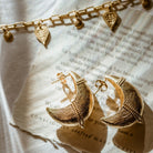 The Valora earrings draw inspiration from unearthed treasures of the ancient world. From jewels once worn by warrior queens. Their sculptural domed form and lightly hammered finish evoke relics of another time, reimagined for today's Loft & Daughter woman.