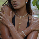 A string of dainty fresh water pearls peppered with golden beads make for a pretty addition to your bracelet stack. This is a chic yet versatile jewellery box staple.