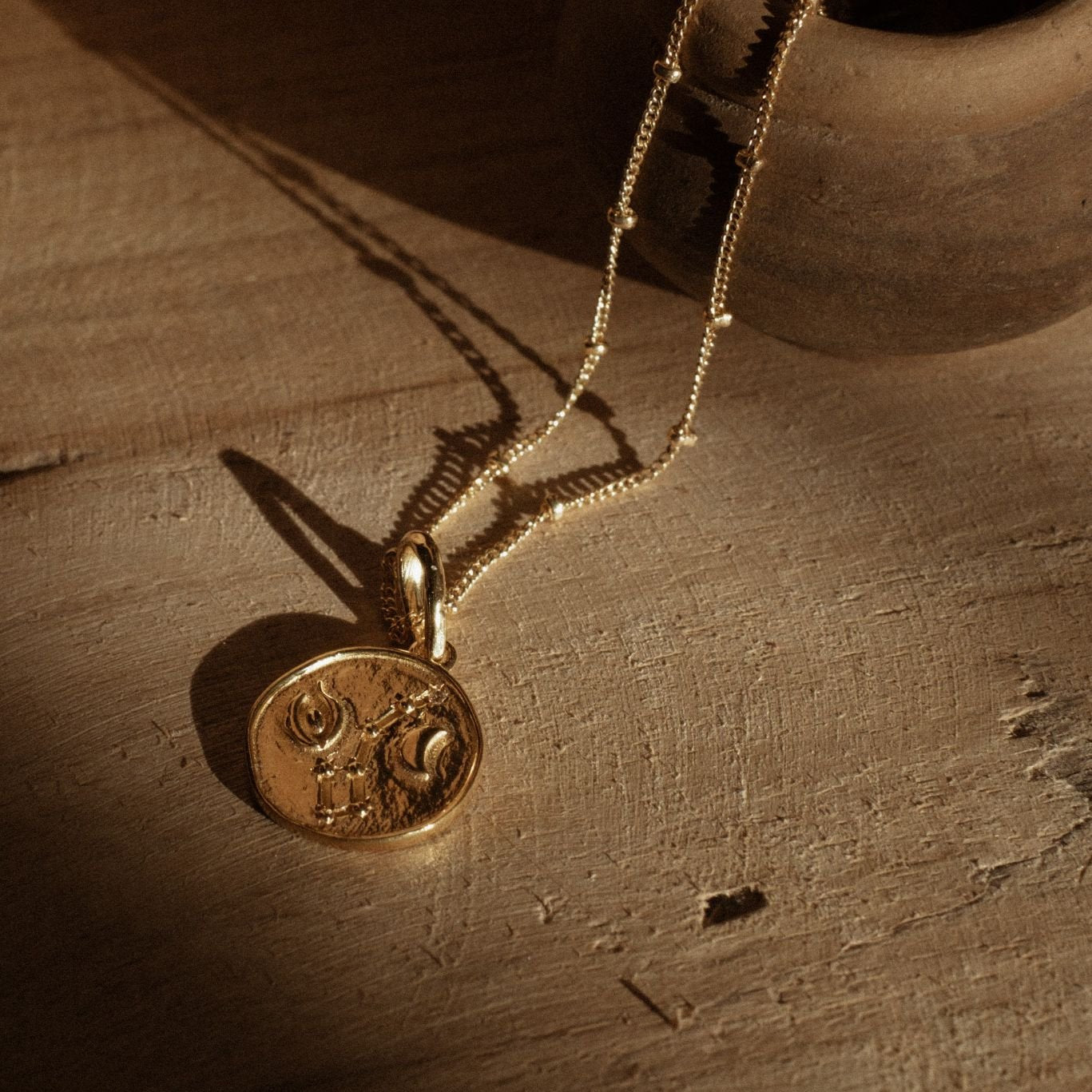 Lakshmi, the radiant goddess of wealth & prosperity, provider of spiritual & material abundance, is celebrated in this antique-inspired coin pendant.