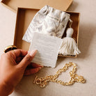 Each piece comes packaged in a soft organic pouch, which has been lovingly made by some of Jaipur’s most vulnerable women, who are bettering their lives through the income from the block printing, tassel making and stitching of these very pouches. No two are the same, each one beautiful in its imperfections.