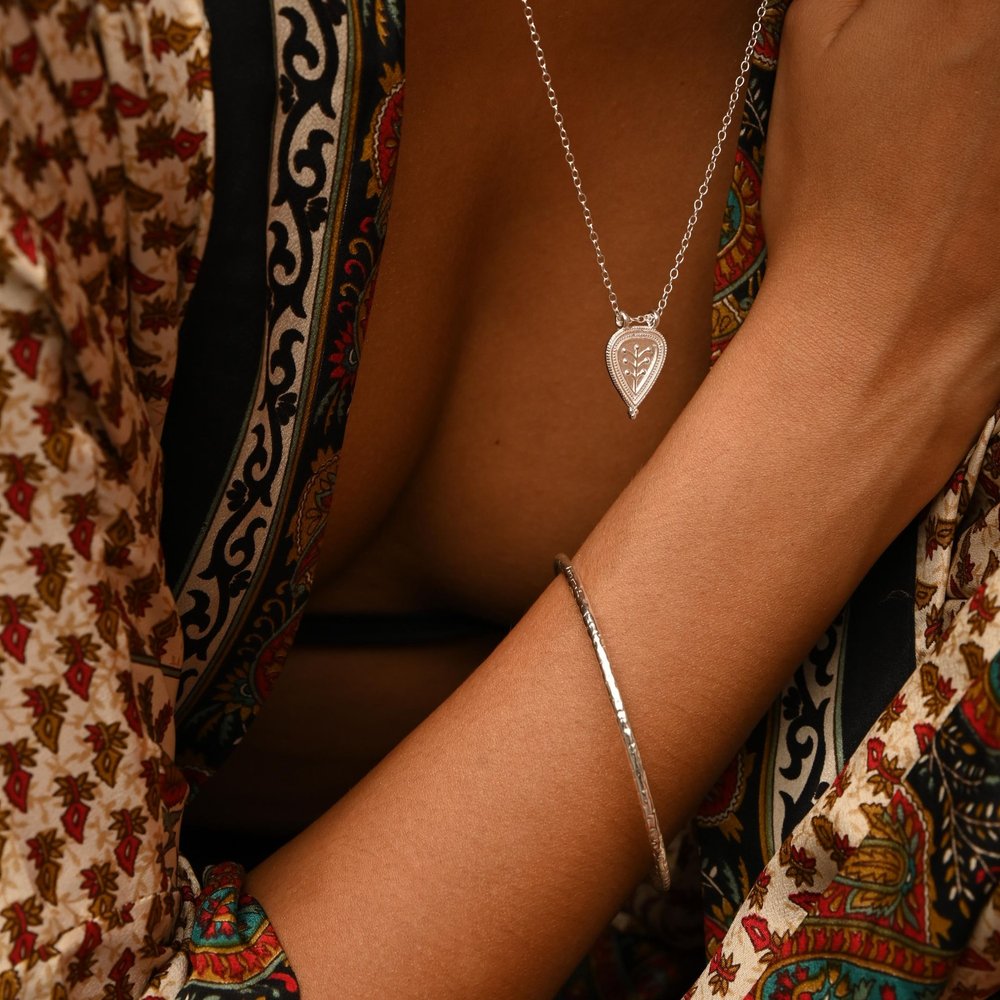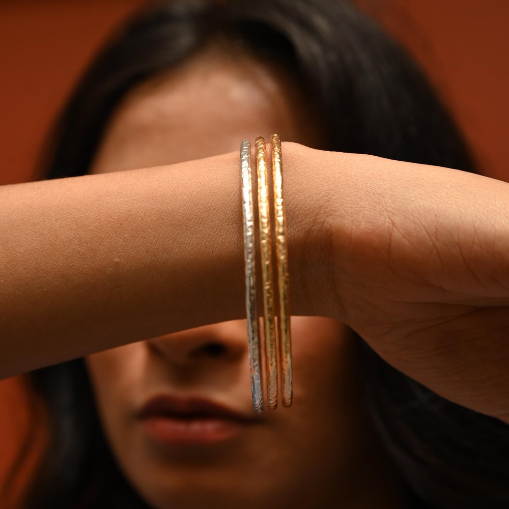 Our beautiful lightly hammered, handcrafted bangle is the perfect addition to your arm stack.